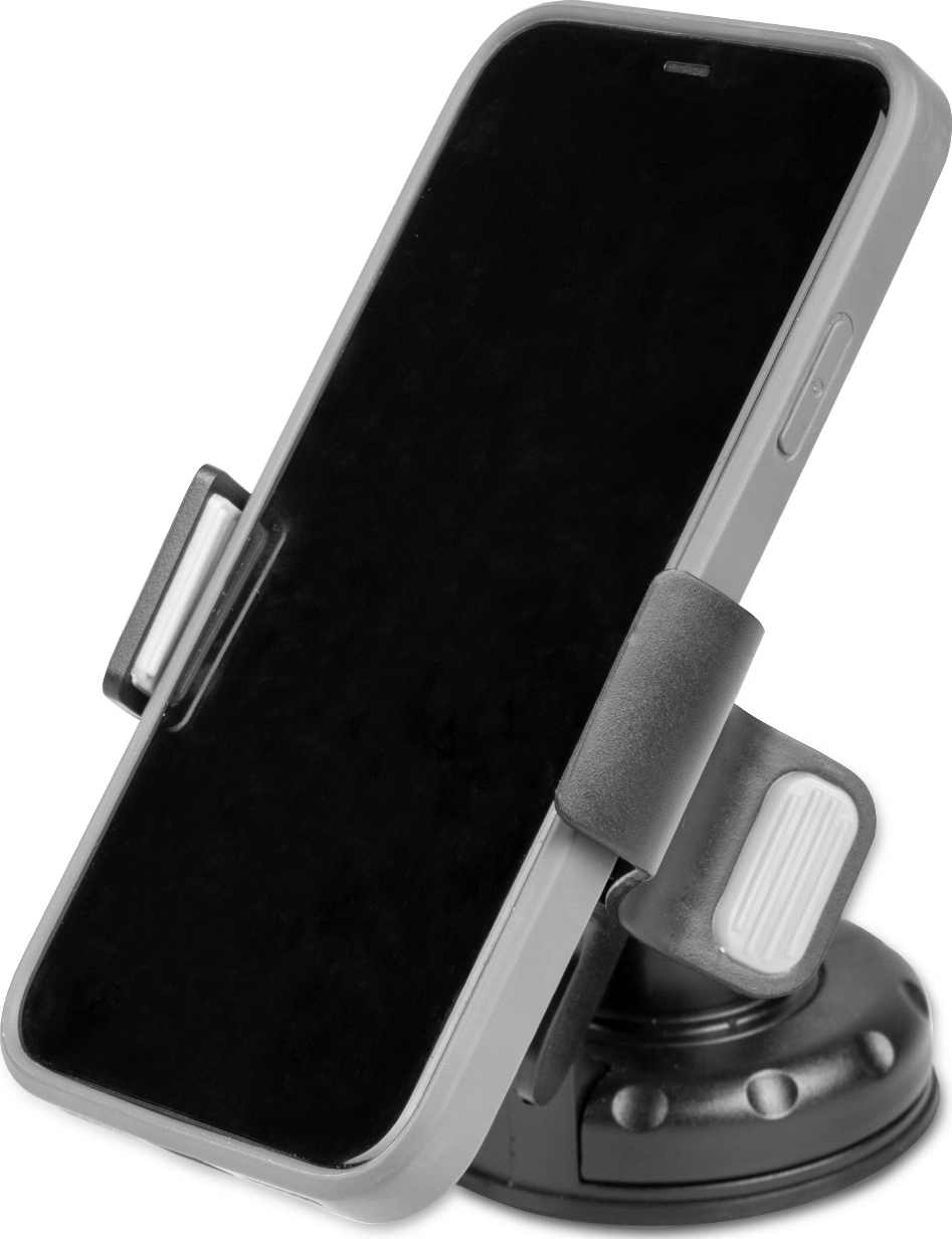 Держатель крепится к любой гладкой поверхности (приборная панель, лобовое стекло, средняя консоль и т.д.) посредством присоски.