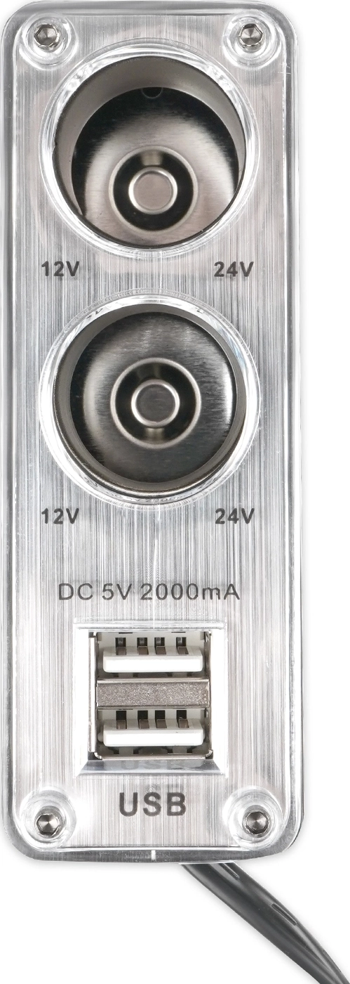 Energy CS-219U подойдет к любому транспортному средству, которое имеет напряжение бортовой сети 12/24 В. Данный прибор обладает 2 выходами и 2 USB-портами, что позволит Вам подключить к устройству до 4 аппаратов одновременно. Для того, чтобы они могли бесперебойно получать питание, указанный разветвитель наделили надежной фиксацией.