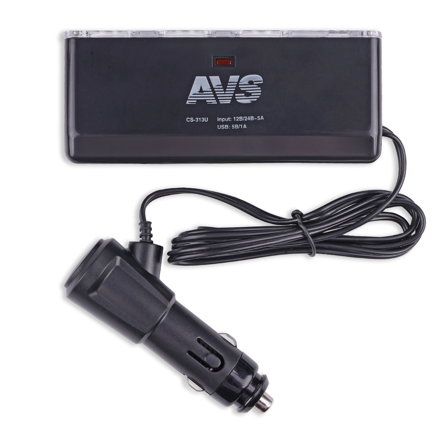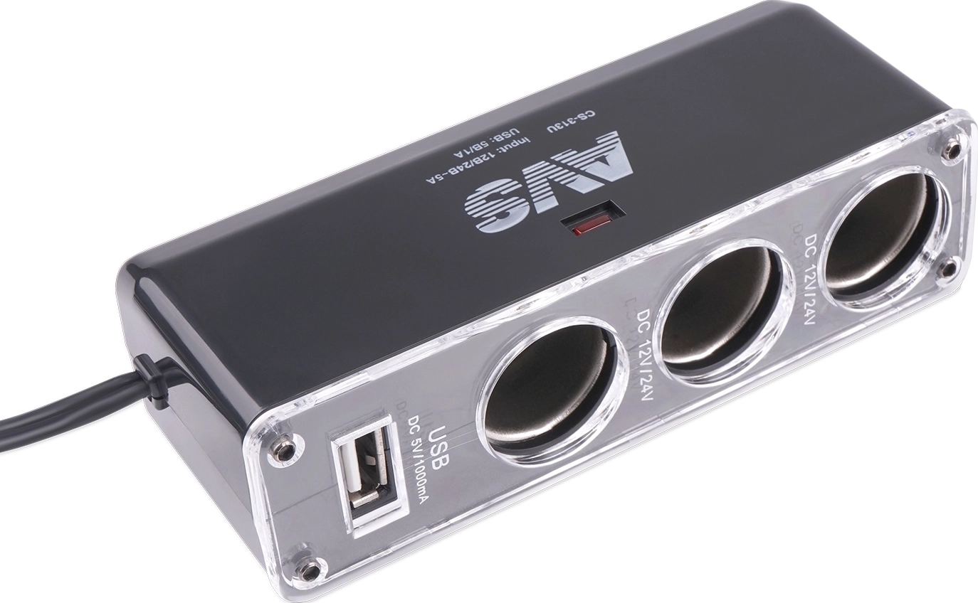 Разветвитель прикуривателя AVS Energy CS-313U - 3 выхода, USB-порт, светодиодный индикатор сети, защита от короткого замыкания, надежная фиксация, современный дизайн