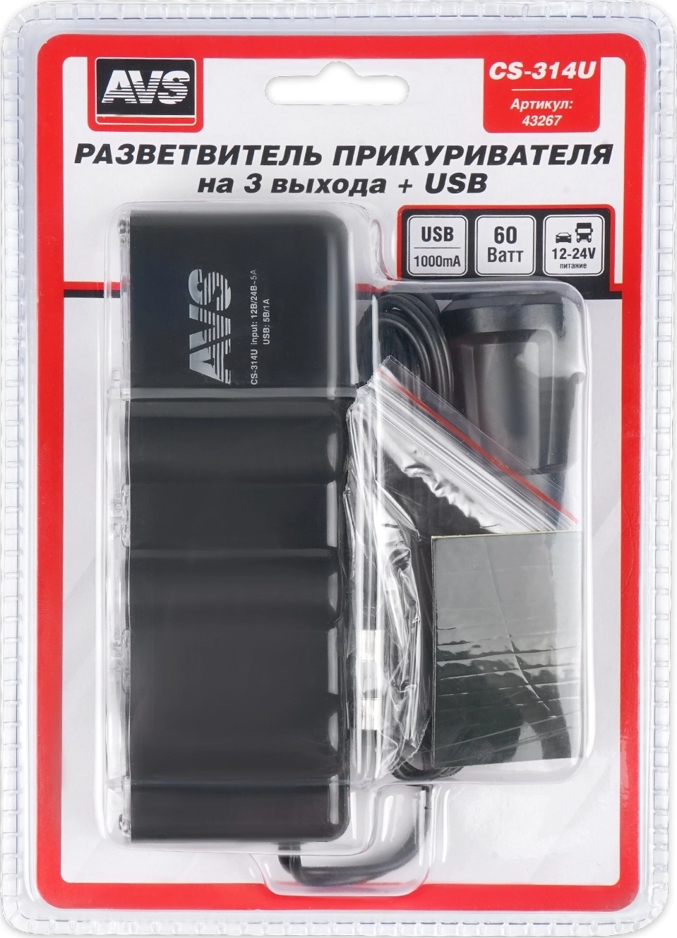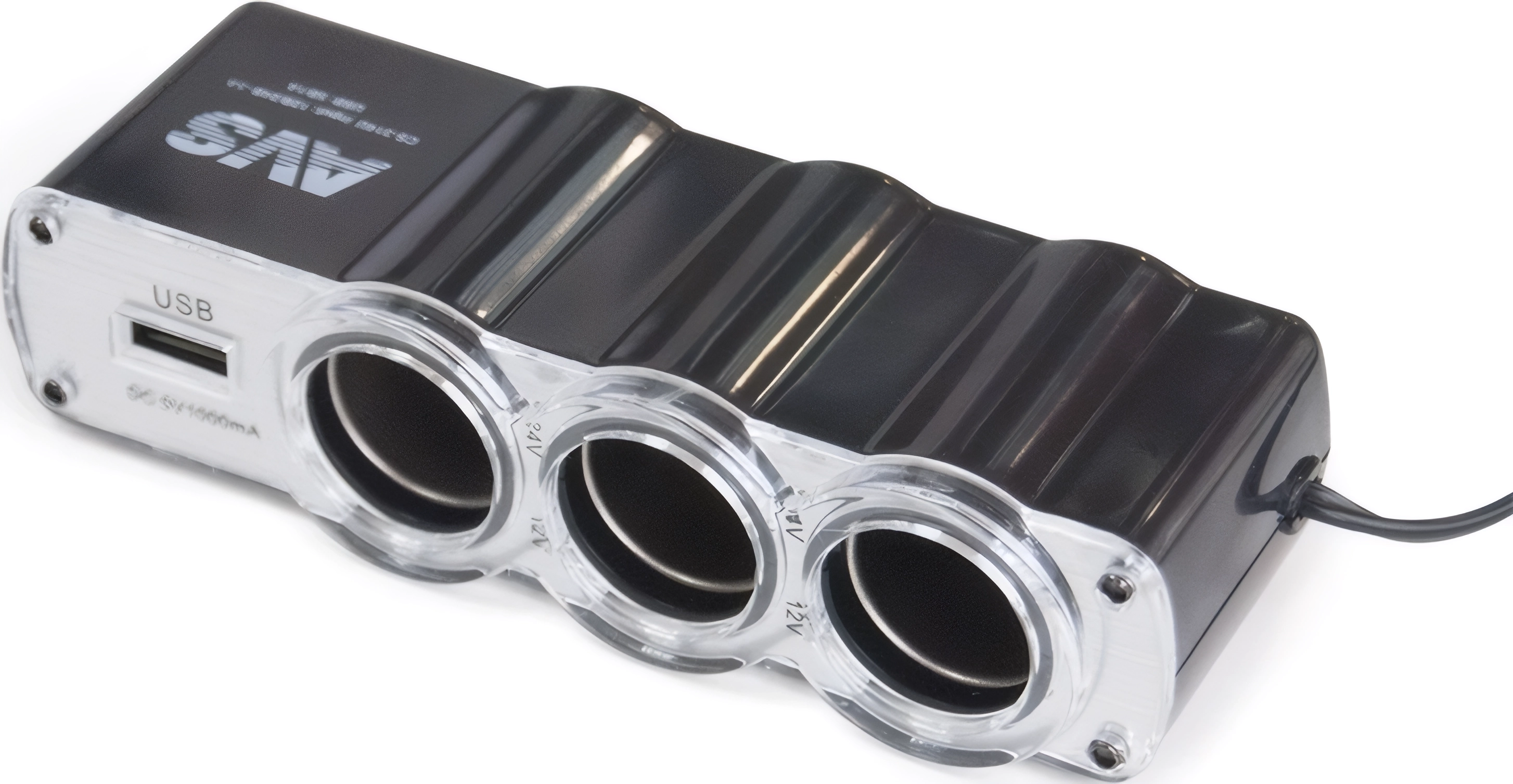Разветвитель прикуривателя AVS Energy CS-314U - 3 выхода, USB-порт, светодиодный индикатор сети, защита от короткого замыкания, надежная фиксация, современный дизайн