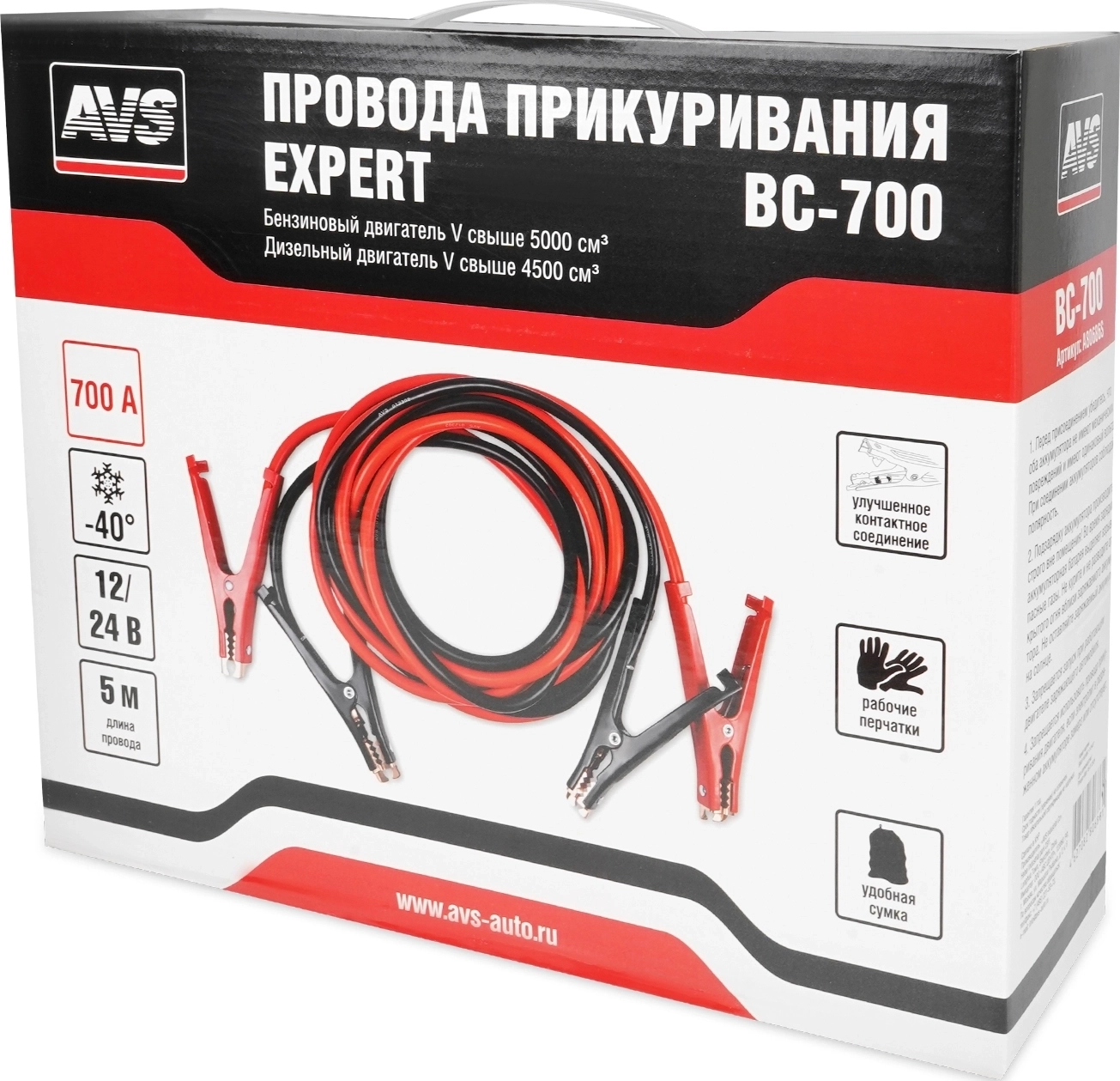 Провода прикуривания (стартовые провода) AVS Expert BC-700 - длина провода 5 м, максимальный ток 700A, морозостойкая оплетка, металлические крокодилы, сумка для хранения и транспортировки