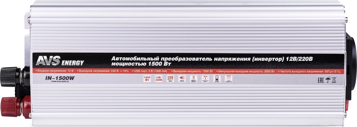 AVS Energy IN-400W универсален в своем применении. Он позволит водителю пользоваться в автомобиле с напряжением бортовой сети 12 В различной техникой, которая предназначена для получения питания от источника напряжения 220 В.