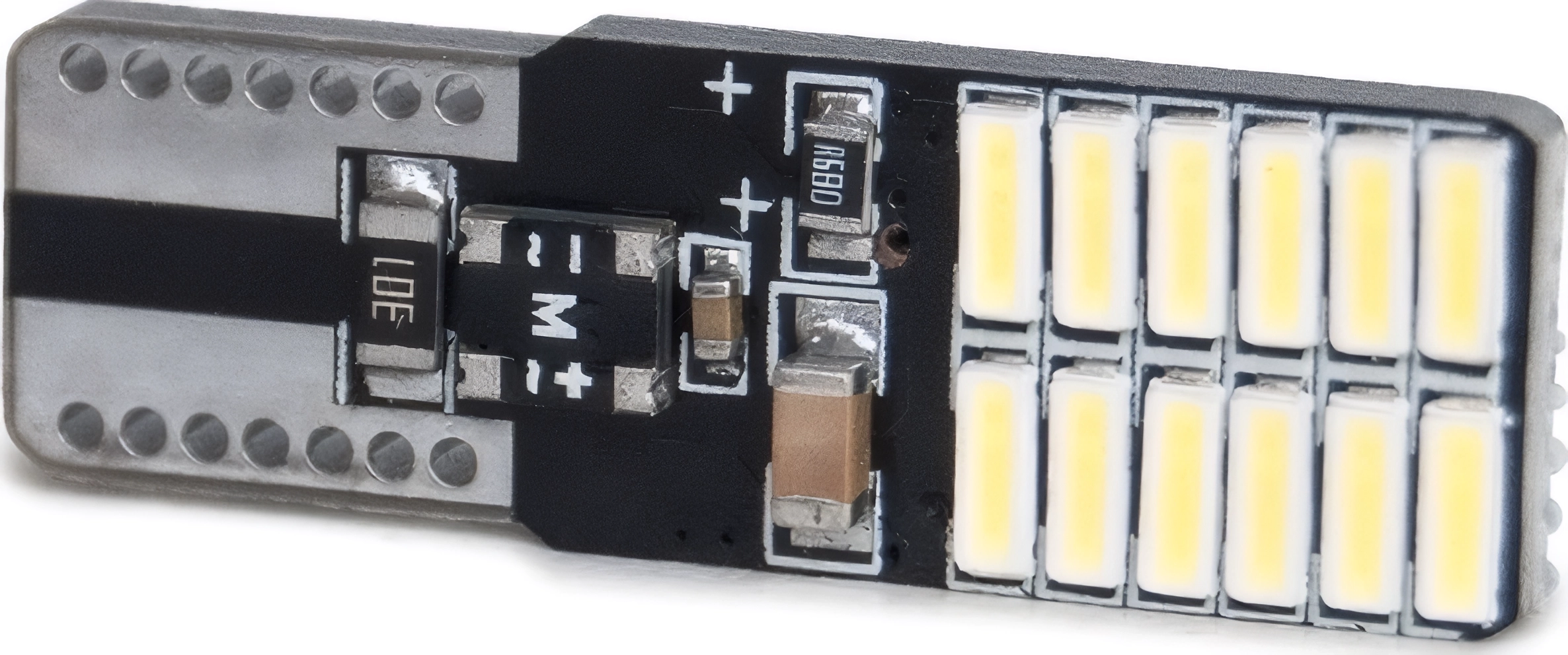 Комплект светодиодных ламп AVS C020 T10 (A78452S) 2 шт. - напряжение питания 12-24 В, встроенный стабилизатор, мощность 3.6 Вт, световой поток 240 лм, встроенная обманка, цветовая температура 6000K