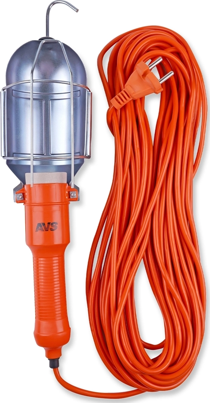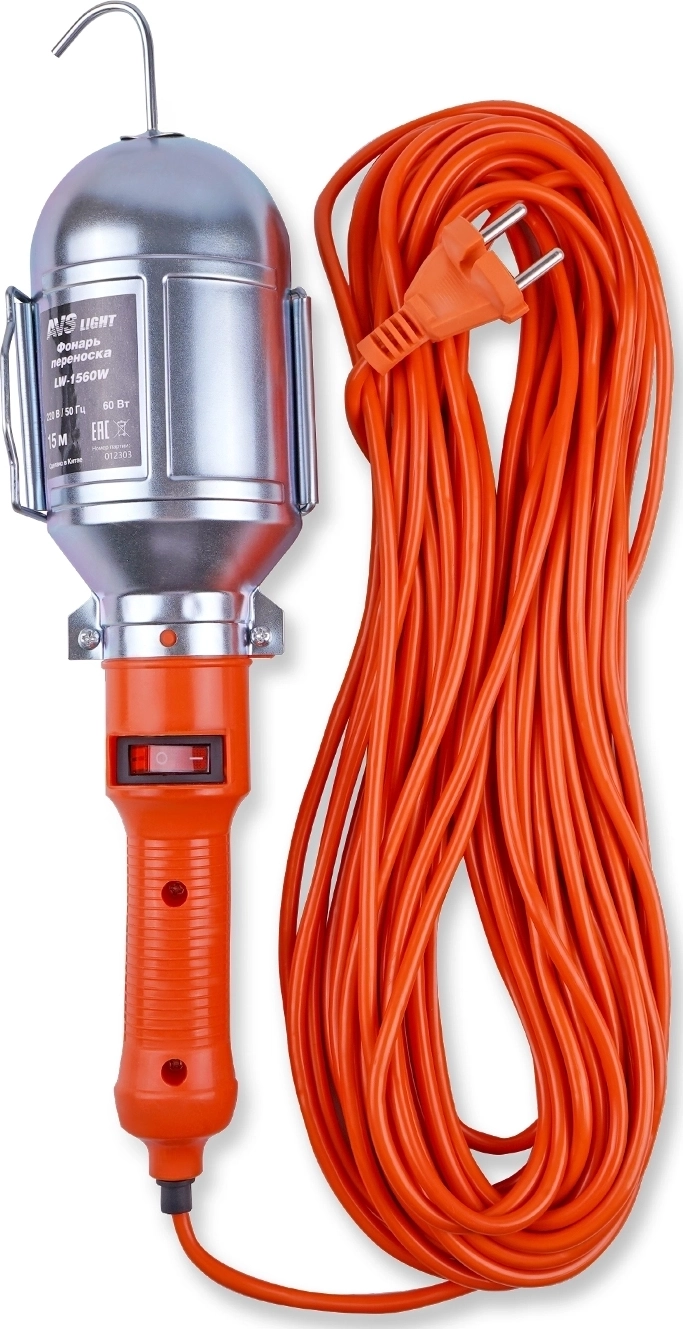 Фонарь переноска AVS LW-1560W - работа от сети 220В, цоколь E27, мощность совместимой лампы до 60 Вт, длина повода 15 м, защитная решетка