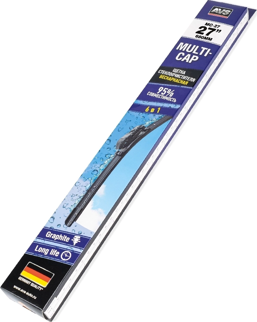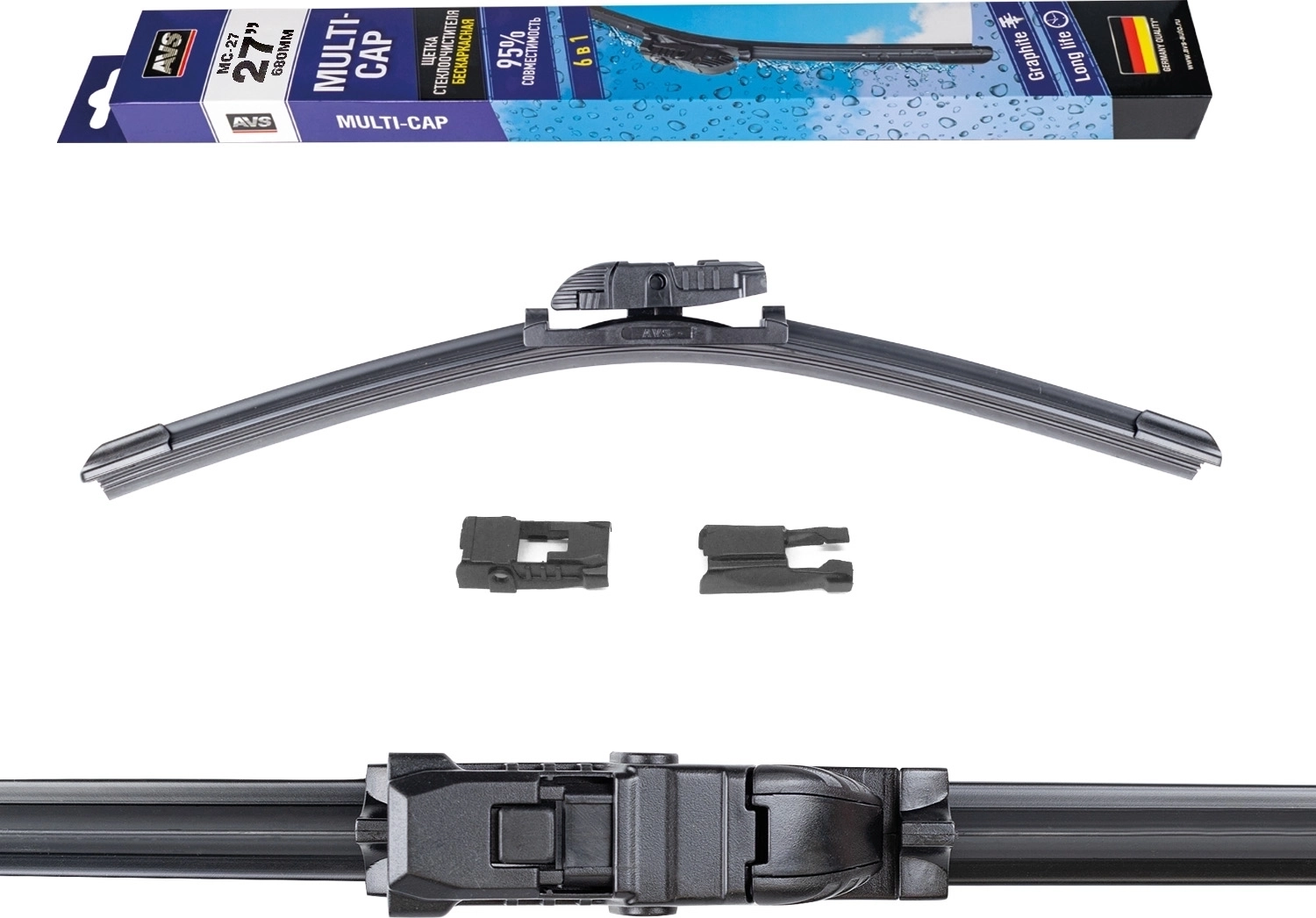 Щетка стеклоочистителя AVS Crystal Multi-Cap 5 в 1 MC-27 (68 см) - аэродинамический профиль, графитовое напыление, современный адаптер, всесезонность использования, широкий диапазон рабочих температур