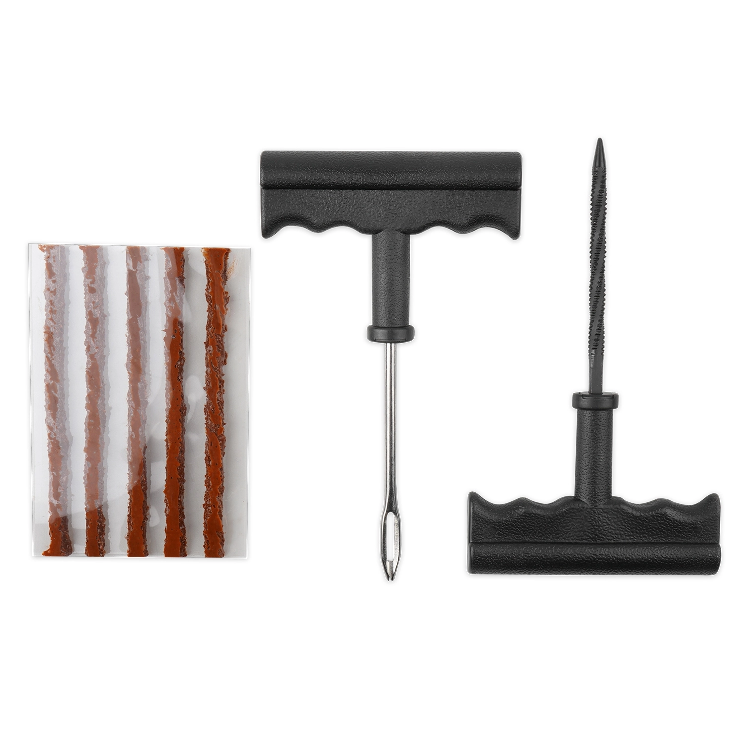 Незаменимый набор для современных автомобилистов. Позволяет устранить прокол бескамерной шины и продолжить поездку. Если диаметр отверстия не превышает 6 мм. вам не потребуется ехать в мастерскую — исправить ситуацию можно даже на обочине. Для устранения прокола вам нет необходимости демонтировать покрышку.