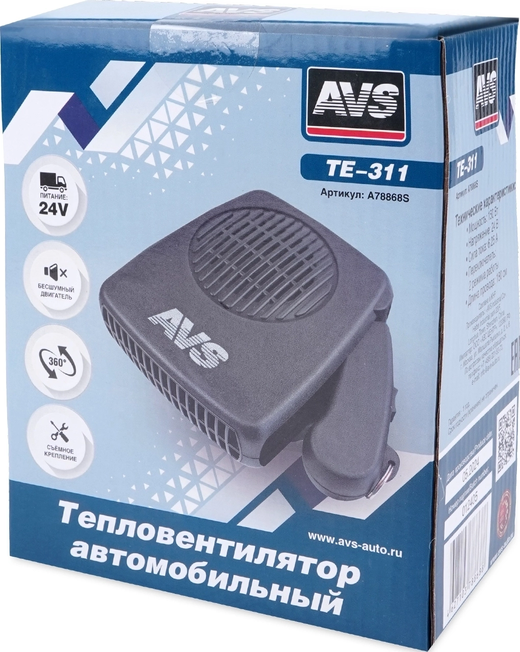 Тепловентилятор автомобильный AVS Comfort TE-311 - 2 режима работы, мощность 150 Вт, рабочее напряжение 24 В