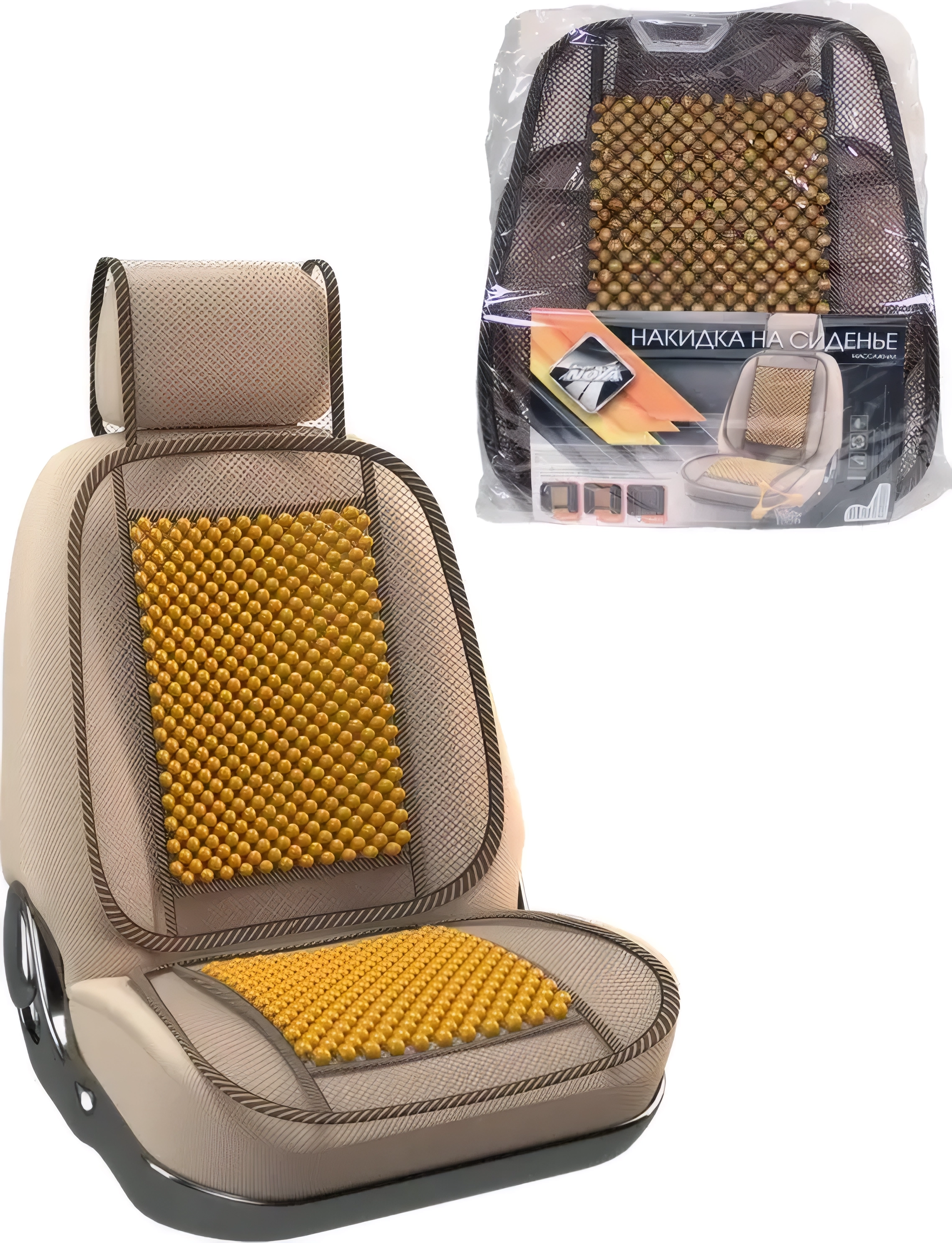 Накидка на сиденье массажная сетчатая, с подголовником, дерев вставки, бежевая арт. 73062