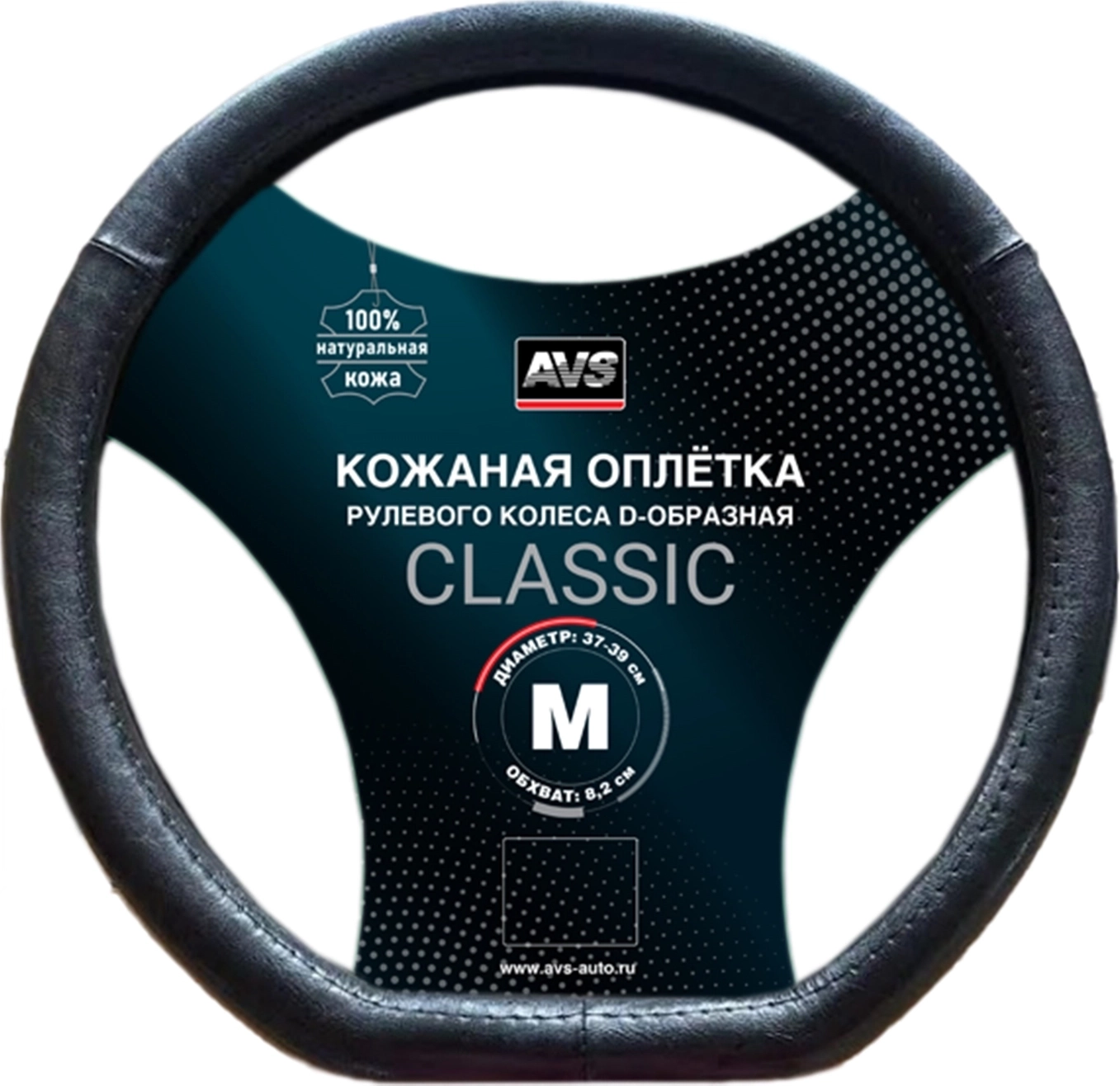 Оплетка на руль D-образная (нат. кожа) AVS DS-665M-B (размер M, черный) - Серия "Classic" арт. 117232
