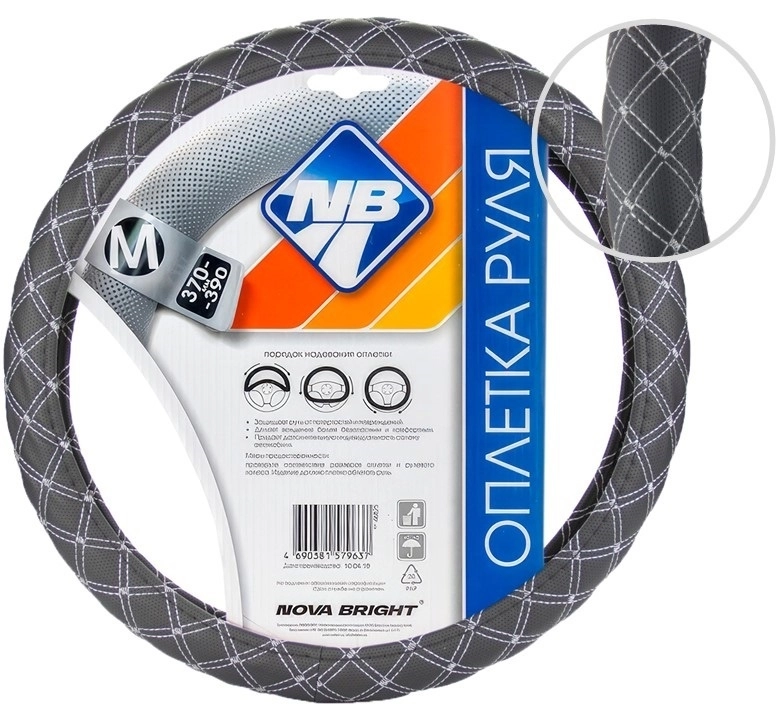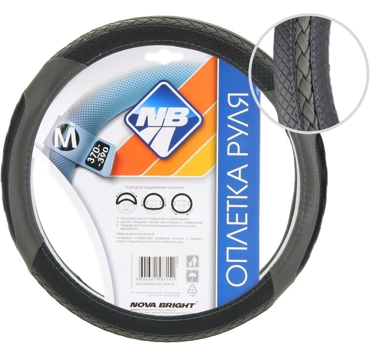 Оплетка на руль M (37-39см) экокожа черно-серая с плетеными вставками арт. 121573