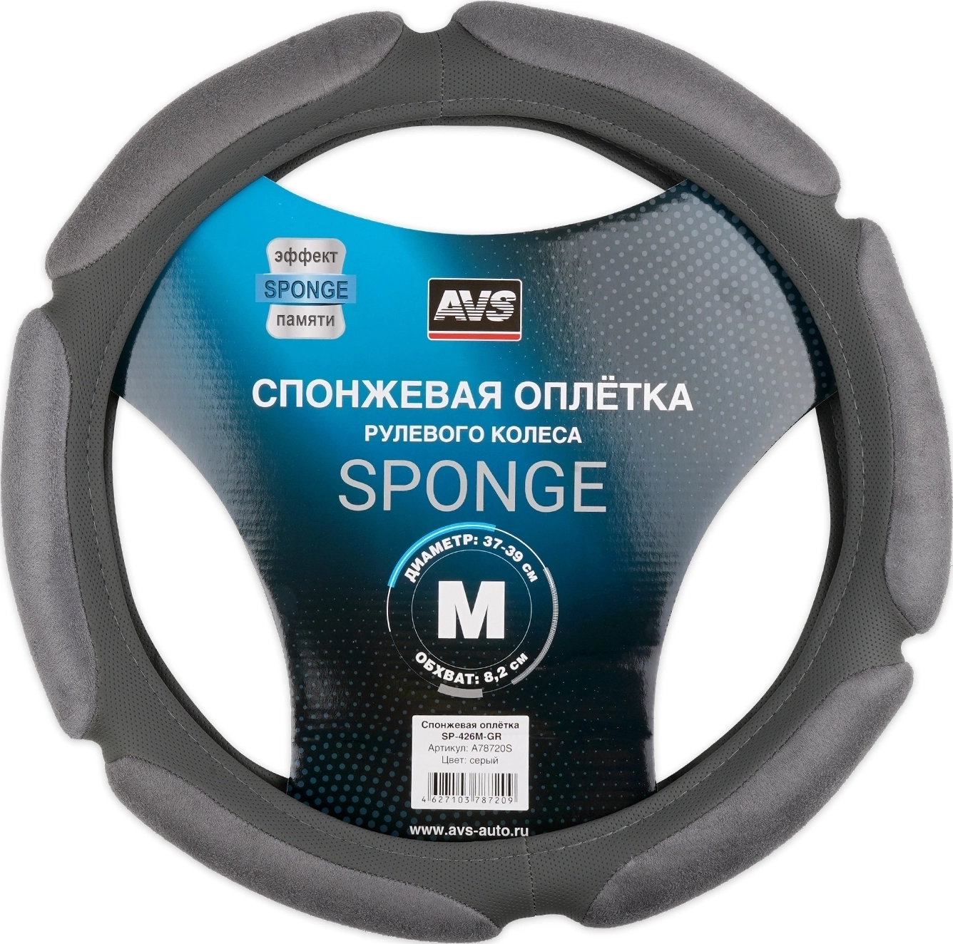 Оплетка на руль AVS SP-426M-GR - материал экокожа и алькантара, размер М, цвет серый арт. 16540