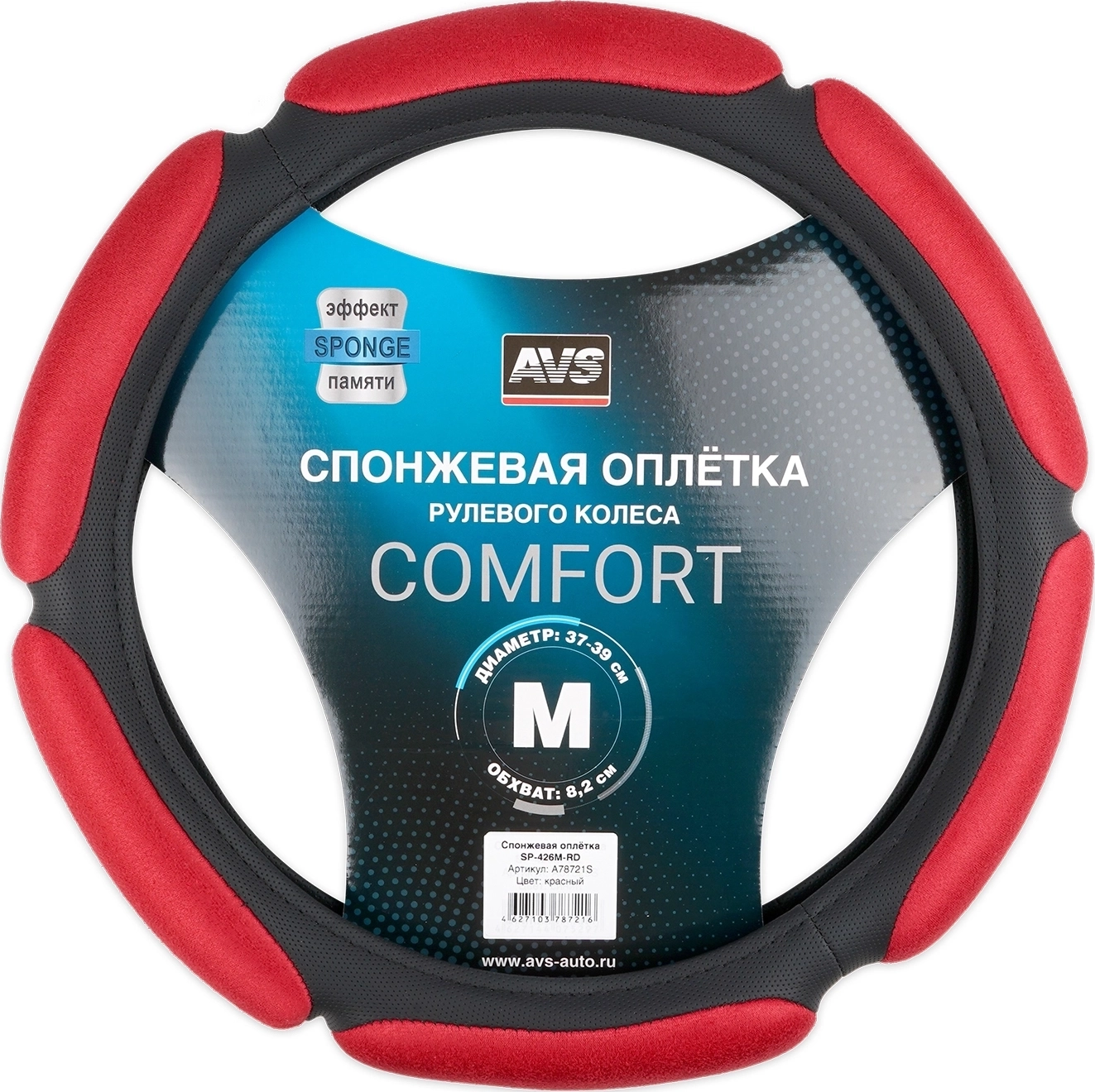 Оплетка на руль AVS SP-426M-RD - материал экокожа и алькантара, размер М, цвет черно-красный арт. 16541
