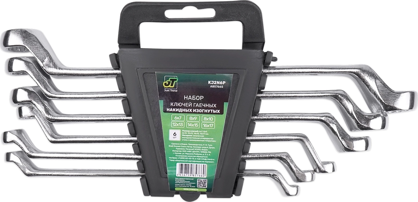 Набор ключей гаечных накидных изогнутых на держателе (8-19 мм) (6 предметов) JT KJ2N6P арт. 117440