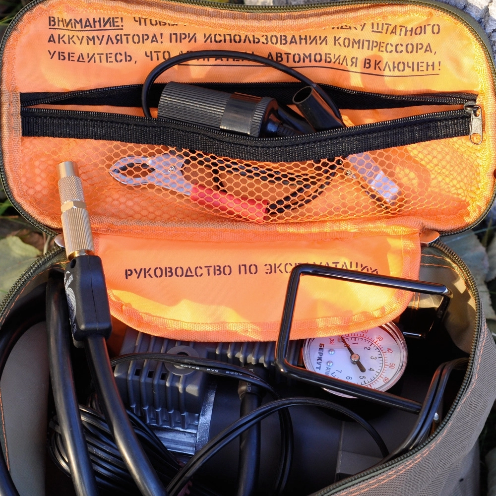 Также хочется отметить компактную конструкцию компрессора и небольшой вес, которые облегчают транспортировку прибора. Подключение к электросети осуществляется посредством гнезда прикуривателя. Пятнадцатиамперный предохранитель размещен на проводе питания.