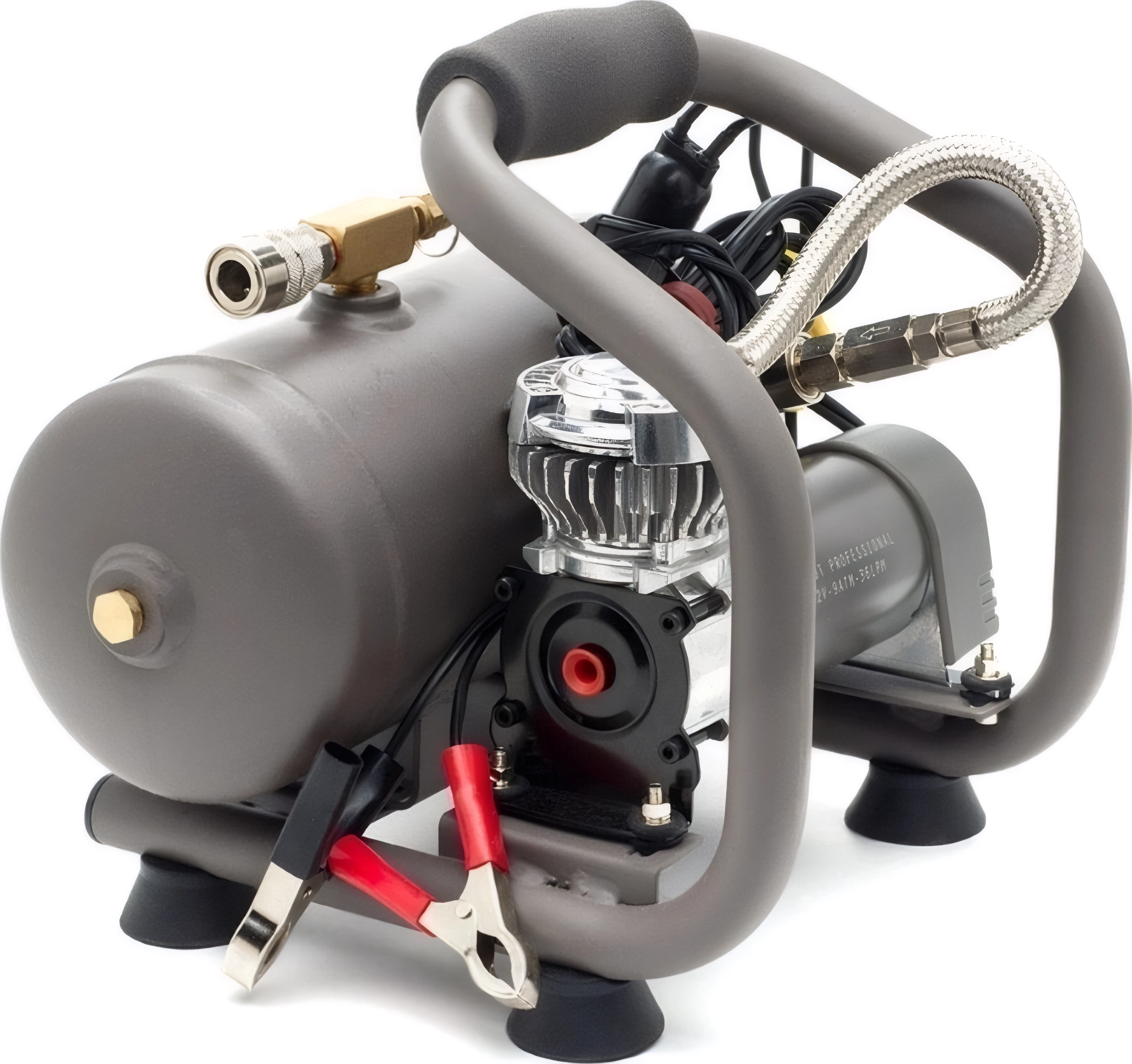 Рабочий цилиндр выполнен из алюминиевого сплава, а воздушные клапаны - из прочной нержавеющей стали. Помимо этого, корпус имеет пыленепроницаемое выполнение, что обеспечивает продолжительную эксплуатацию устройства. Морозостойкие провода питания обеспечивают удобную эксплуатацию устройства в зимний сезон.