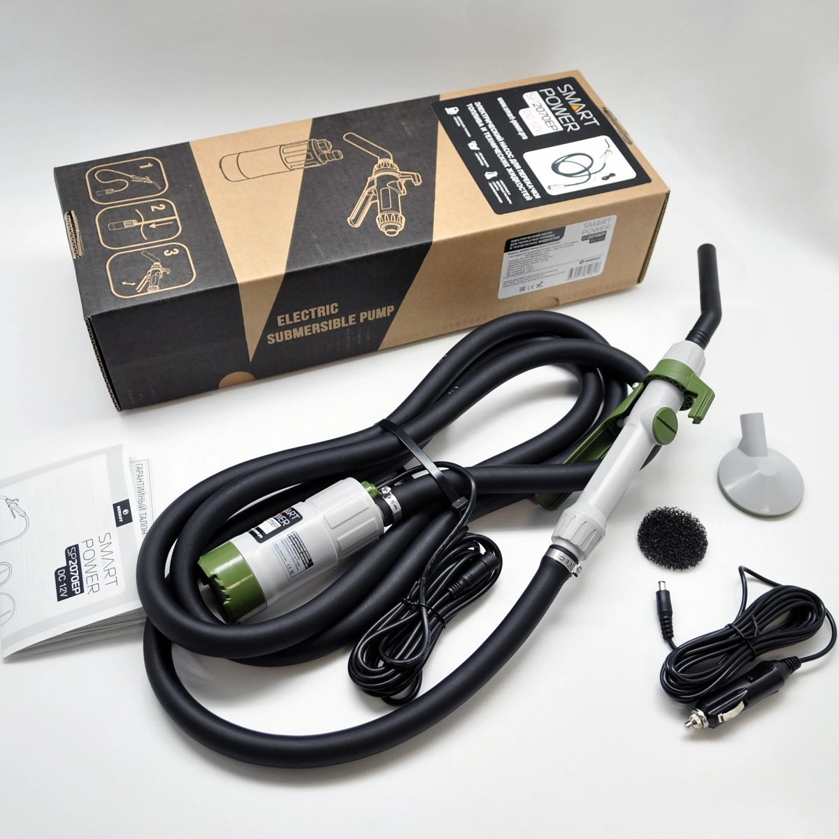 Погружная электрическая помпа SMART POWER SP-2070EP торговой марки BERKUT — мощный электрический насос для перекачки дизельного топлива, керосина, антифриза, AdBlue, легких масел, спиртов, тех. воды. Модель проста и безопасна в управлении и обслуживании. Рекомендуется для бочек различной высоты, обладает высокой производительностью до 11 л/мин. Оборудована высококачественным резиновым шлангом с заправочным пистолетом, позволяющим управлять потоком переливаемой жидкости простым нажатием и разжатием рукоятки. Питание происходит от 12 V, при этом время непрерывной работы до 15 мин. Мощная помпа SMART POWER поможет решить вопросы, связанные с заправкой автомобилей и другой техники, например, квадроциклов и снегоходов в полевых условиях, вдали от стационарных АЗС.