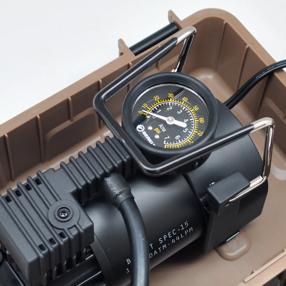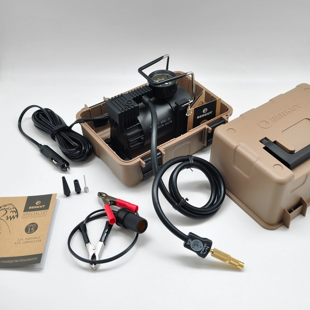 BERKUT SPEC-15 - новый портативный автомобильный компрессор, который интегрирован в пластиковый защитный бокс, позволяющий эксплуатировать компрессор в экстремальных условиях и значительно упрощающий его хранение и транспортировку. Данная модель компрессора также отличается применением новой поршневой группы, которая позволили увеличить производительность до 44 л/мин. Манометр компрессора оснащен демпфирующим устройством, которое обеспечивает точность измерения давления и минимальную погрешность.