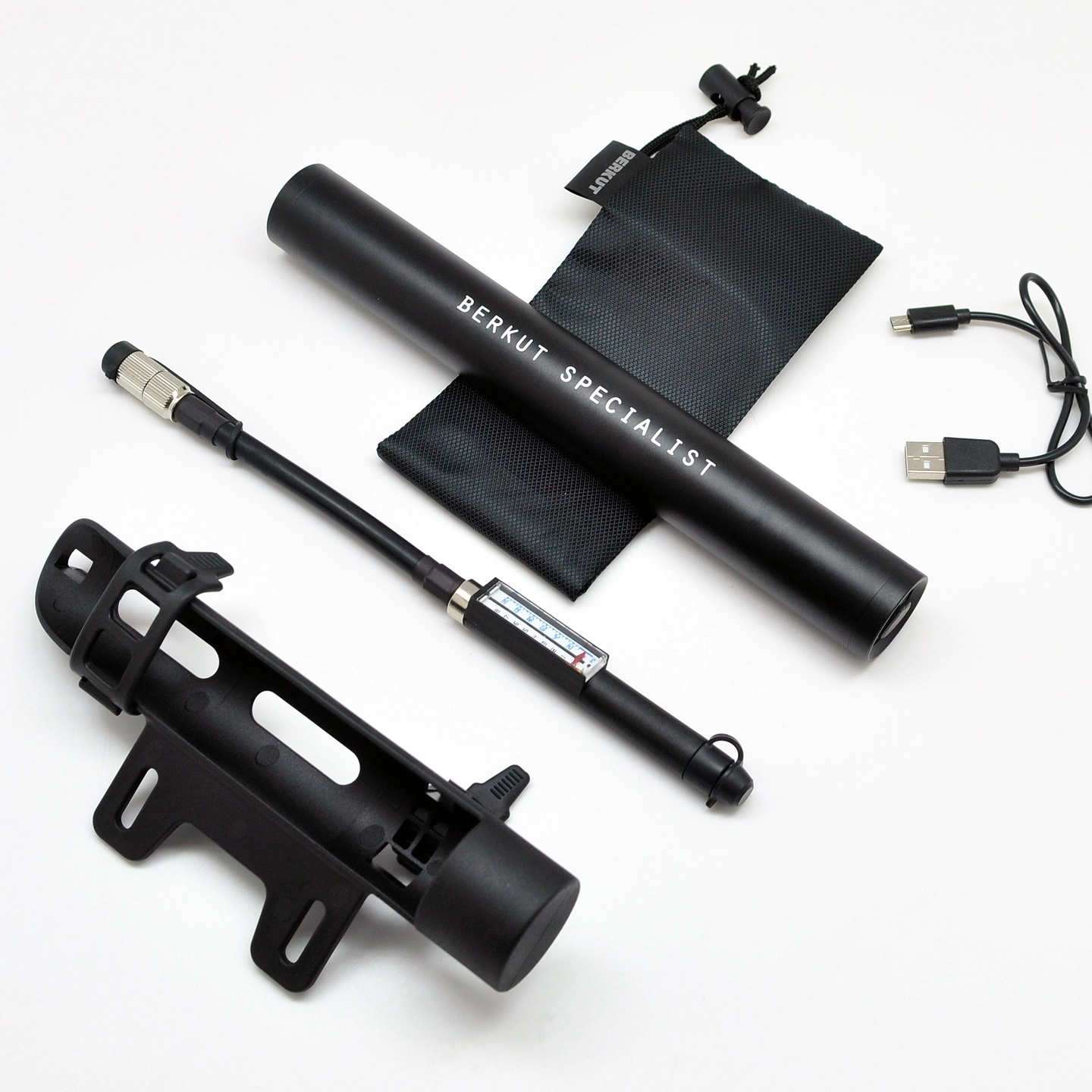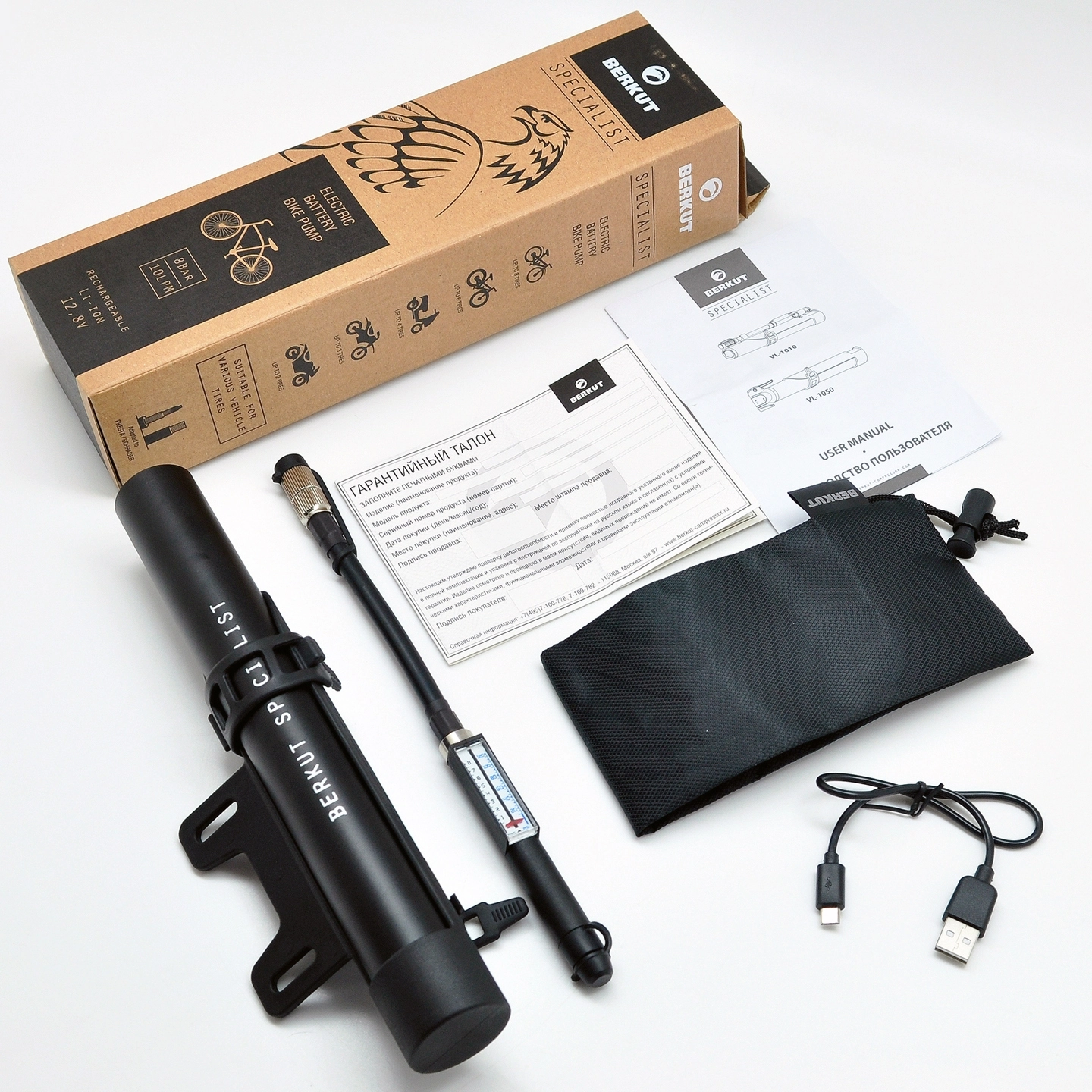Торговая марка BERKUT выпустила электрические велокомпрессоры серии BERKUT Specialist, питание которых происходит от встроенного Li-ion аккумулятора емкостью 500 мА*ч. От данного источника питания насос способен непрерывно работать в течение 7-8 минут, при этом его максимальна производительность равна 10 л/мин. Переносной электрический велонасос BERKUT Specialist VL-1010 комплектуются надежным креплением на раму и снабжен уникальным линейным высокоточным манометром, удобно расположенным вдоль шланга насоса. В насос установлен яркий светодиодный фонарь, который поможет велосипедисту работать с устройством в тёмное время суток.
