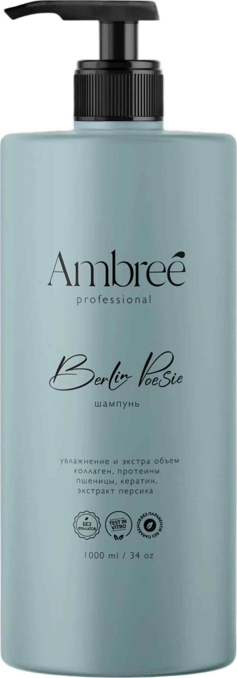 Кератиновый шампунь увлажнение и экстра объем Berlin poesie 1л арт. 120311