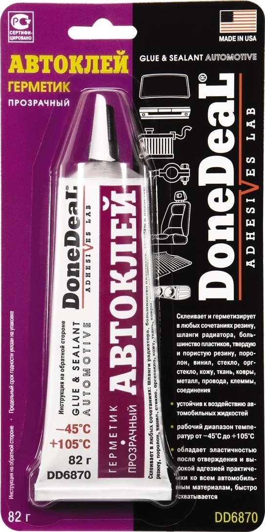 DoneDeal 6870 "Автоклей", клей-герметик прозрачный GLUE & SEALANT "AUTOMOTIVE" 82 г.(b)