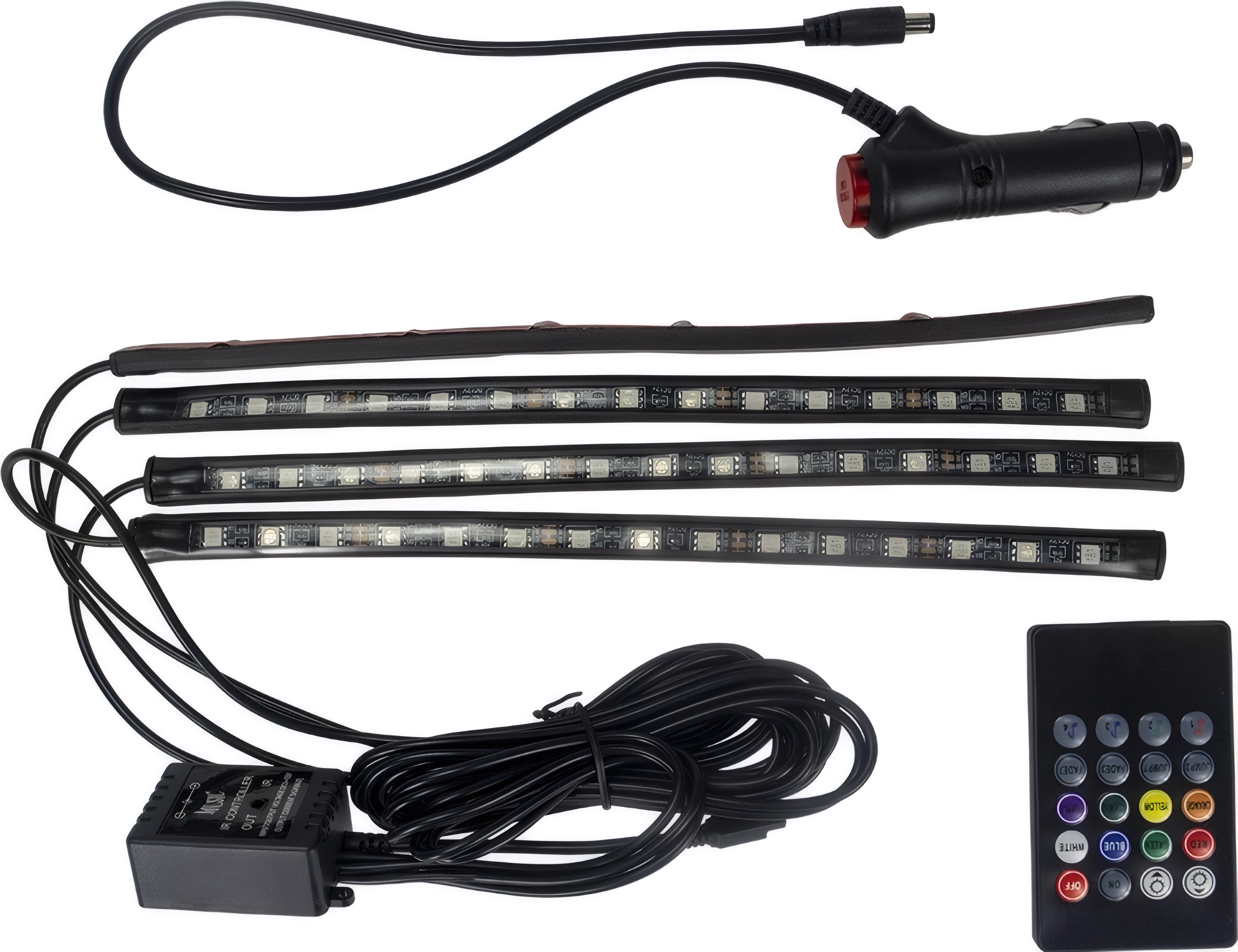Подсветка ног автомобиля , 12V с пультом, под прикуриватель арт. 120519
