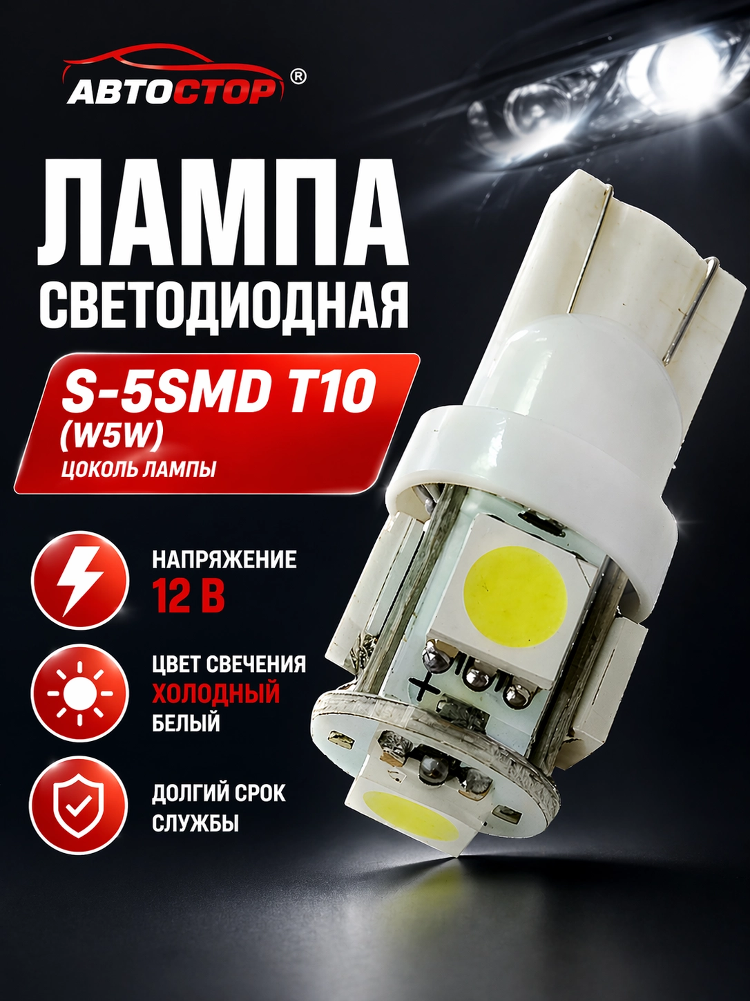 Комплект светодиодных ламп AVS T111 T10 (2 шт.) - (A07039S) напряжение питания 12 В, мощность 0.8 ... арт. 17480