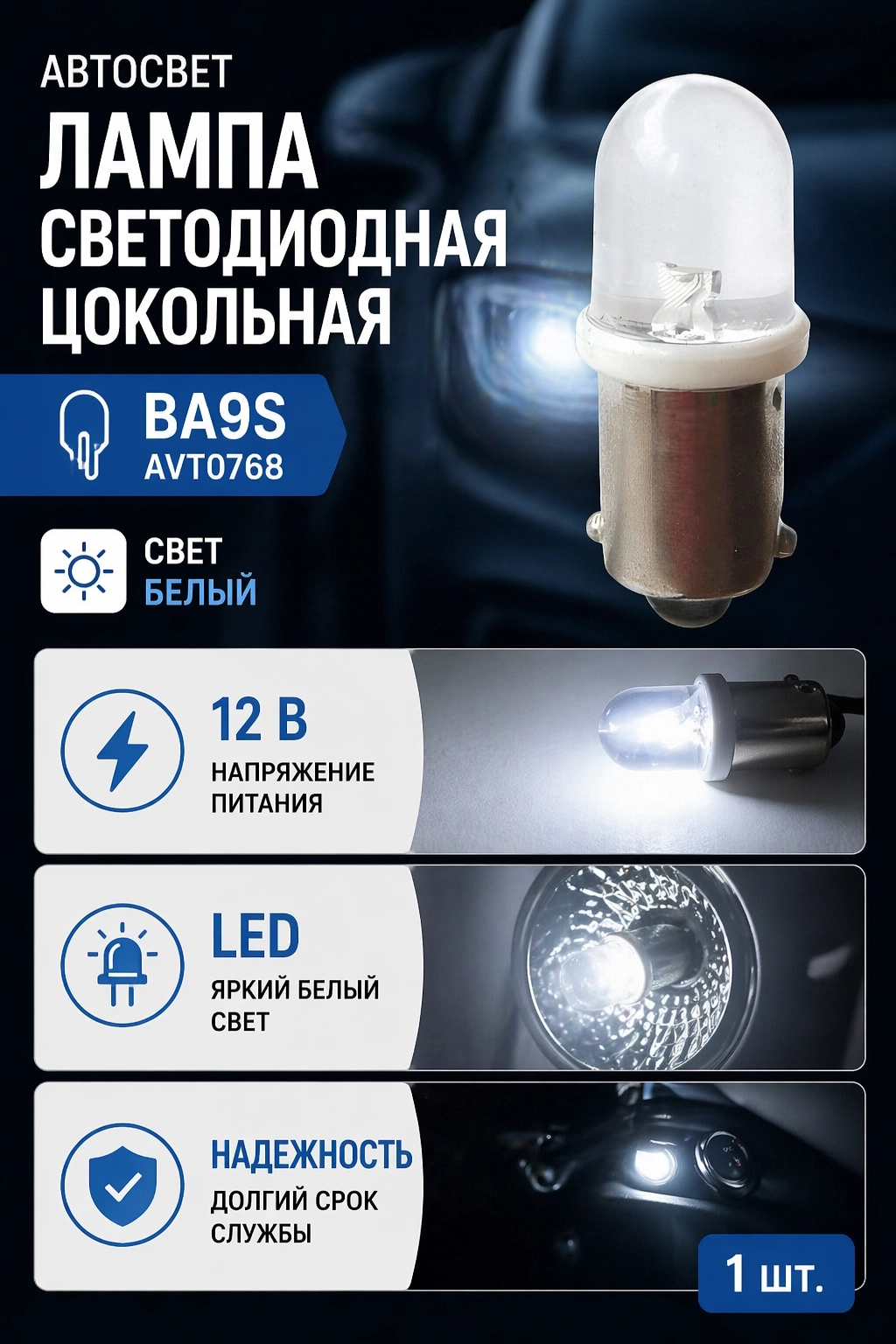 Лампа светодиодная цокольная ВА9S AVT0768 (1 шт) белая арт. 29239