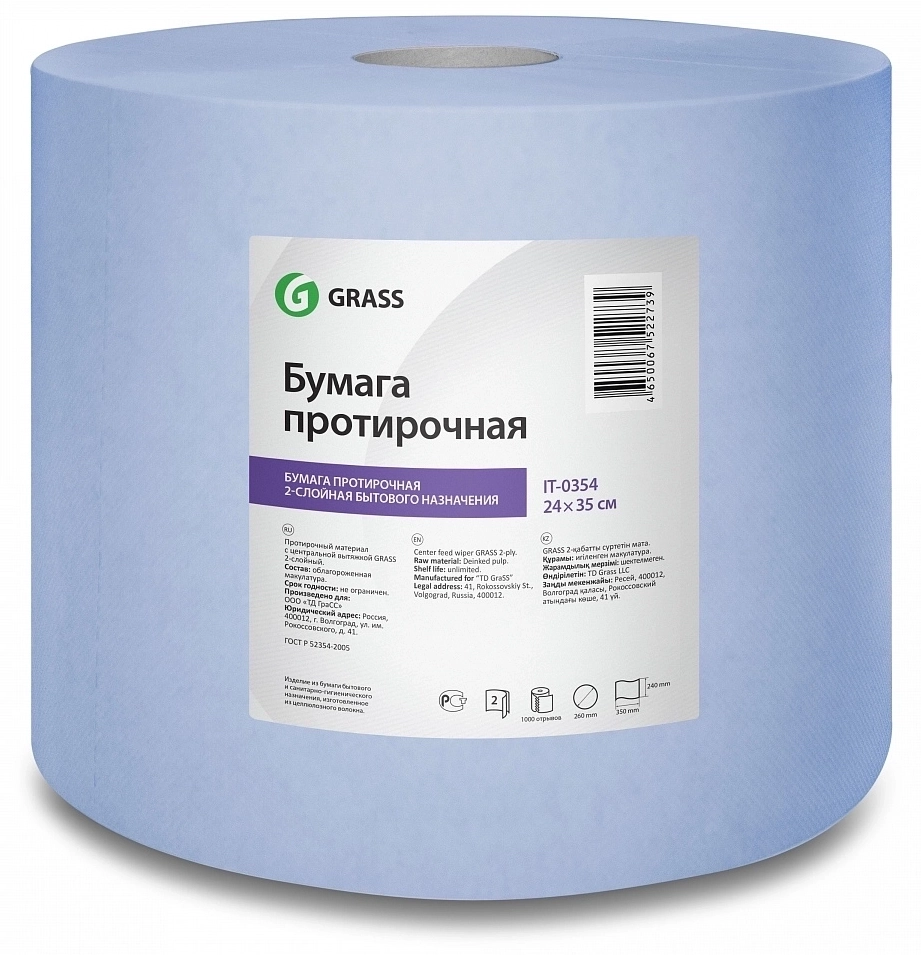 Бумага протирочная двухслойная GRASS IT-0354 - 1000 отрывов, 24х35 см