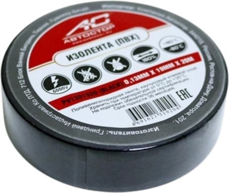 Изолента ПВХ АС PV1301920 19мм*20м*130мик черная Автостор PV1301920 19мм*20м*130мик