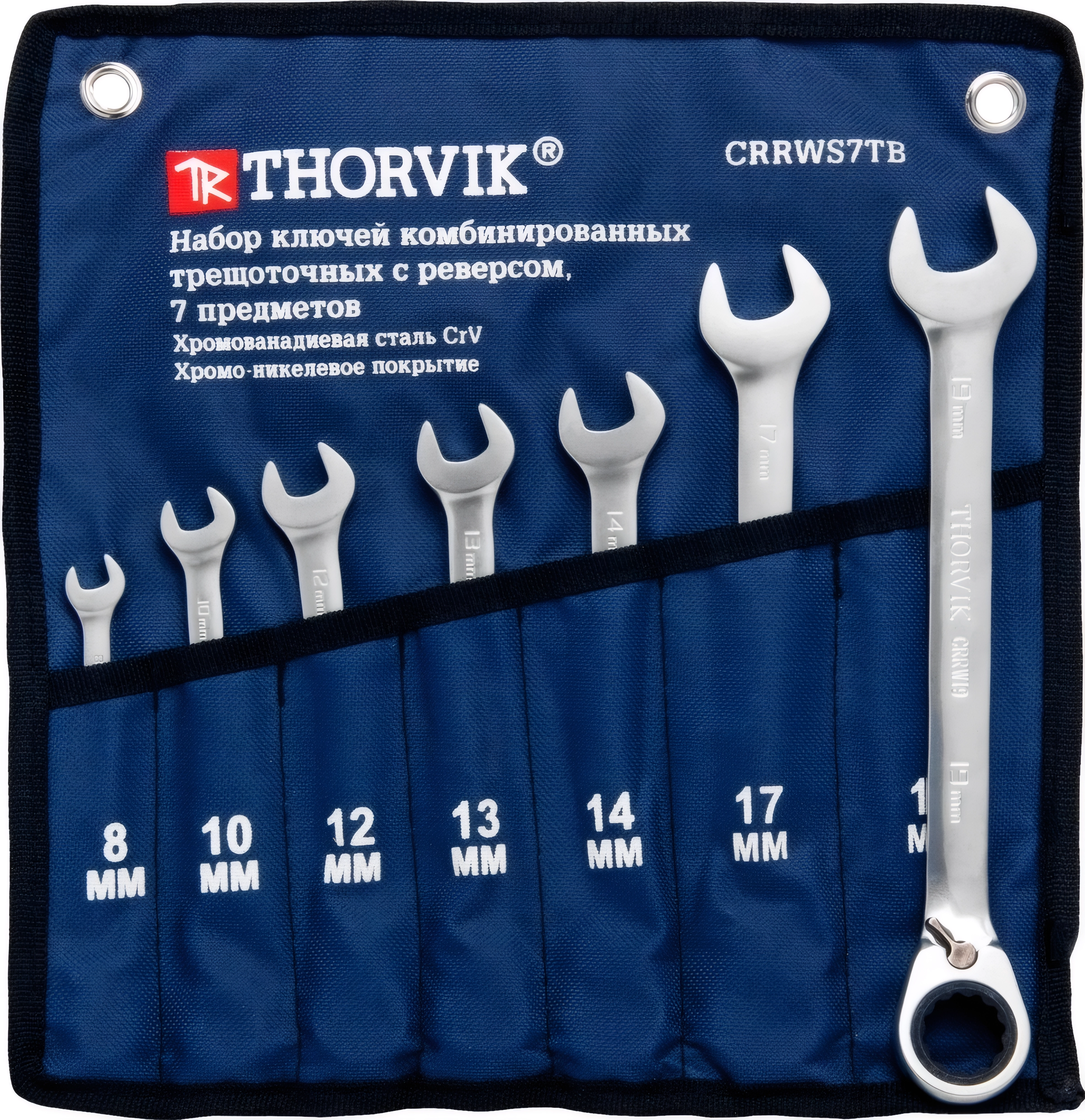 Набор ключей гаечных комбинированных трещоточных с реверсом в сумке, 8-19 мм, 7 предметов арт. 67767