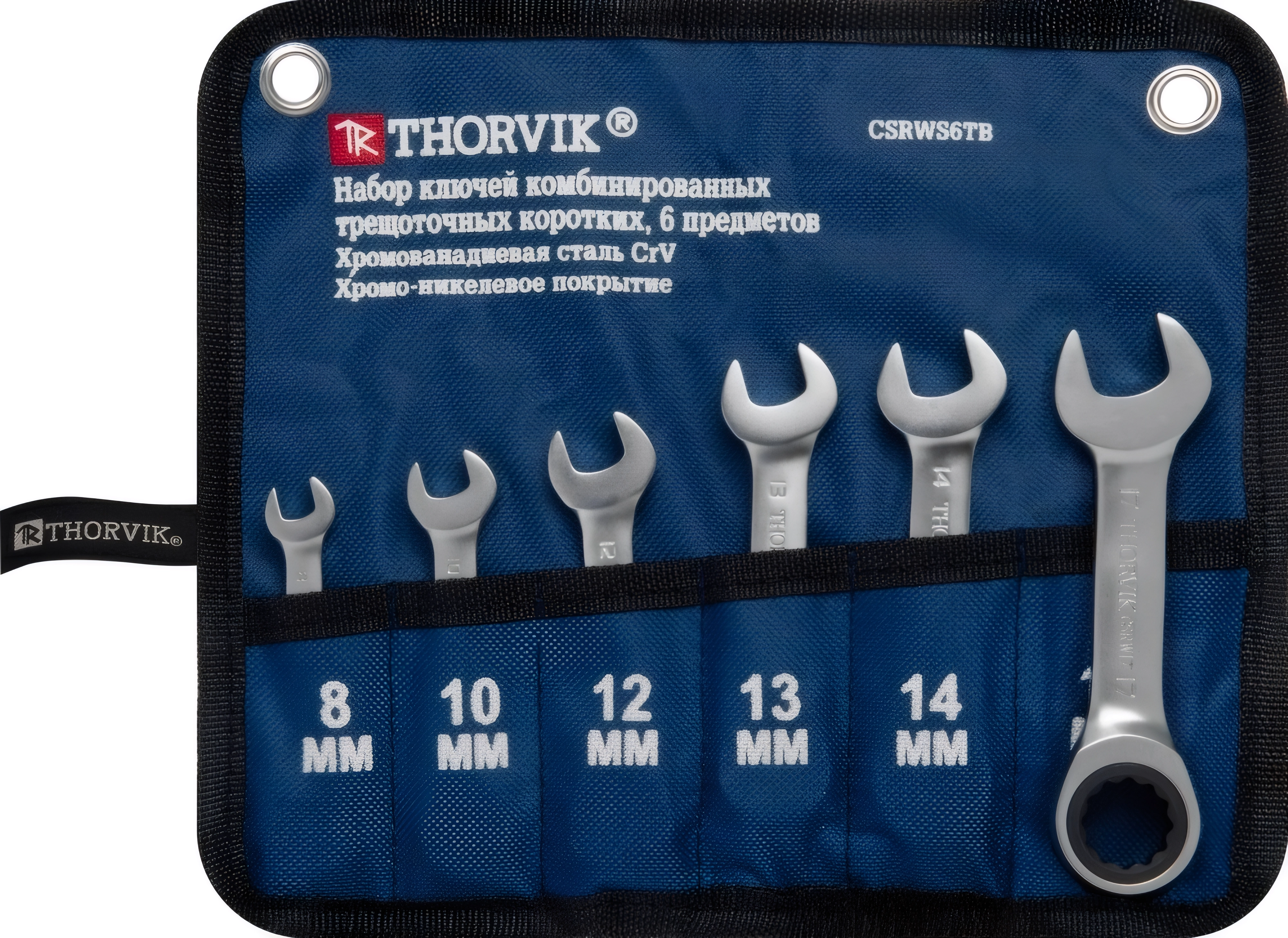 Набор ключей гаечных комбинированных трещоточных коротких в сумке, 8-17 мм, 6 предметов арт. 67754