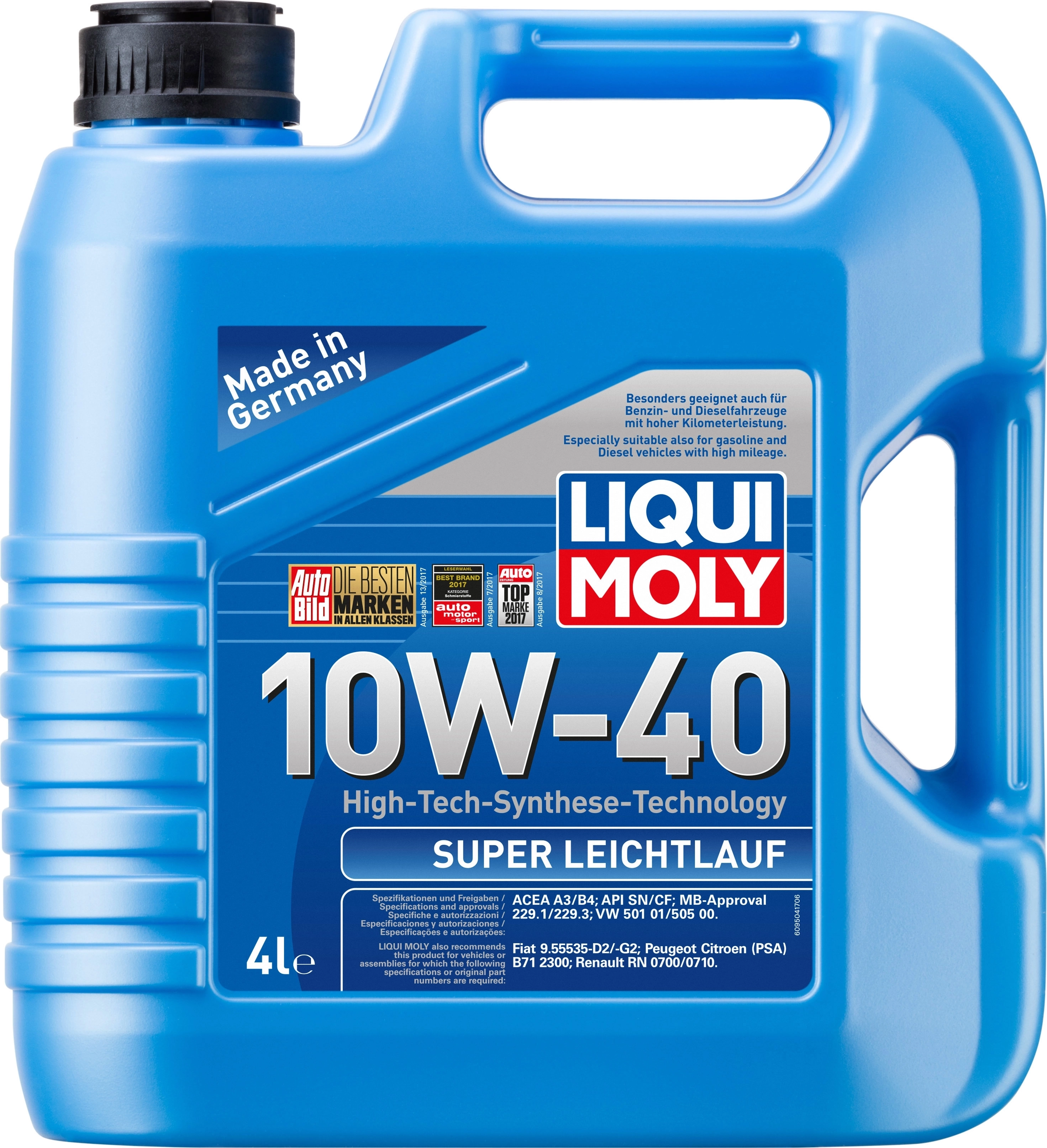 Синтетическое моторное масло LiquiMoly Super Leichtlauf 10W-40 SN A3/B4 (4л) арт. 120778