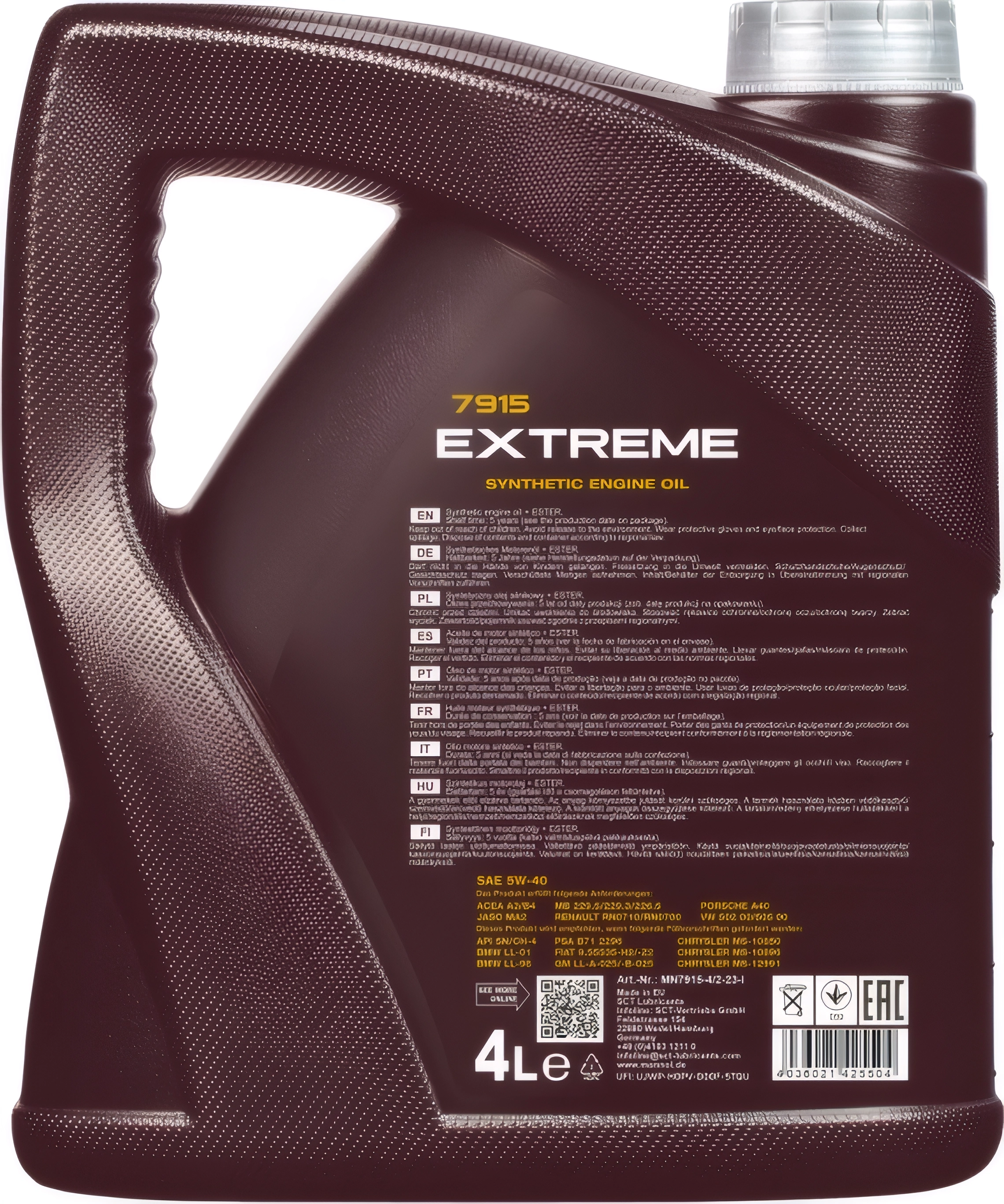 Масло моторное MANNOL 7915 Extreme 5W40 ACEA A3/B4 API SN/CH-4 (4 л)