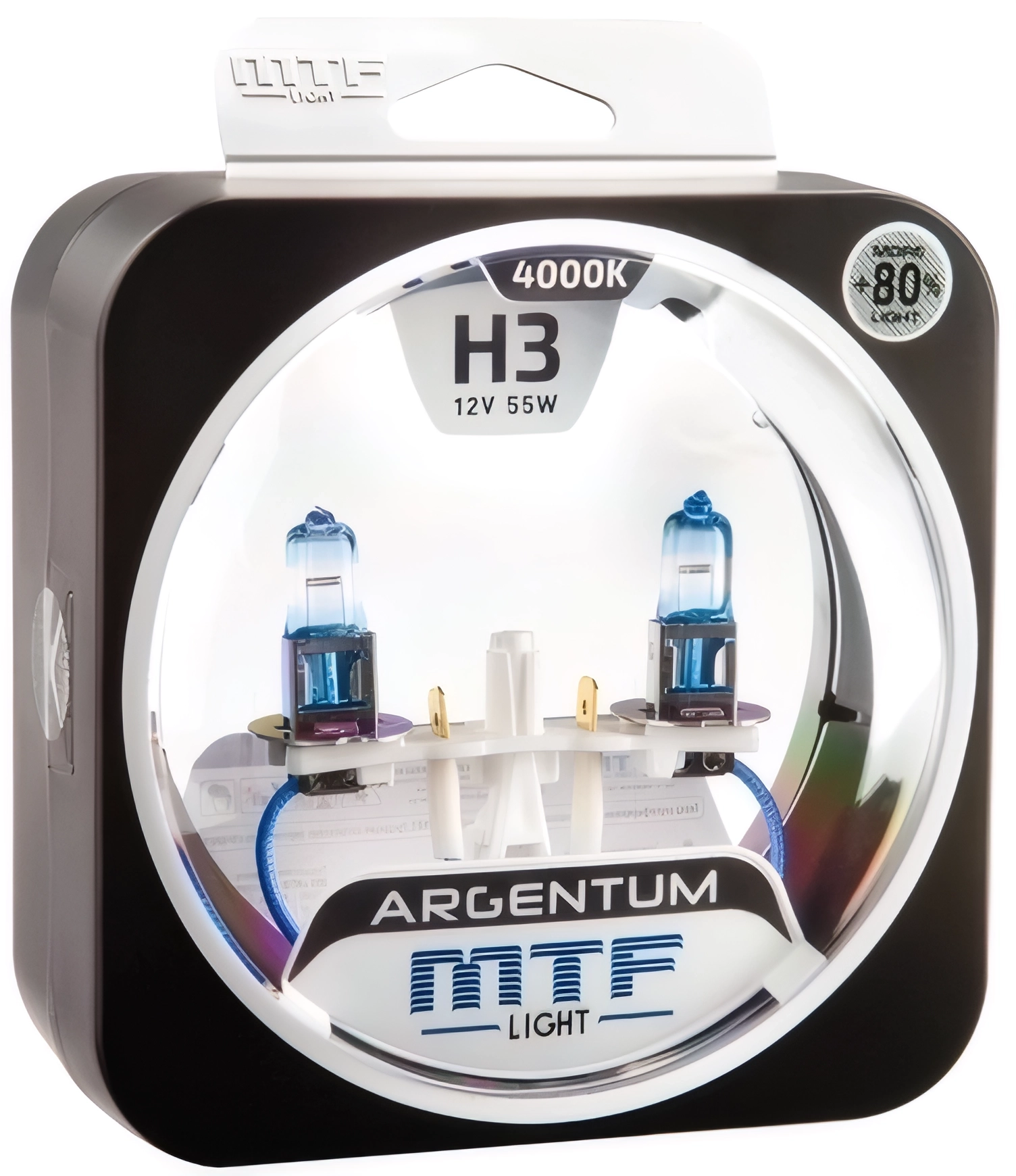 Комплект галогенных ламп MTF Light Argentum (+80%) H3 55W 12V - на 80% больше света!