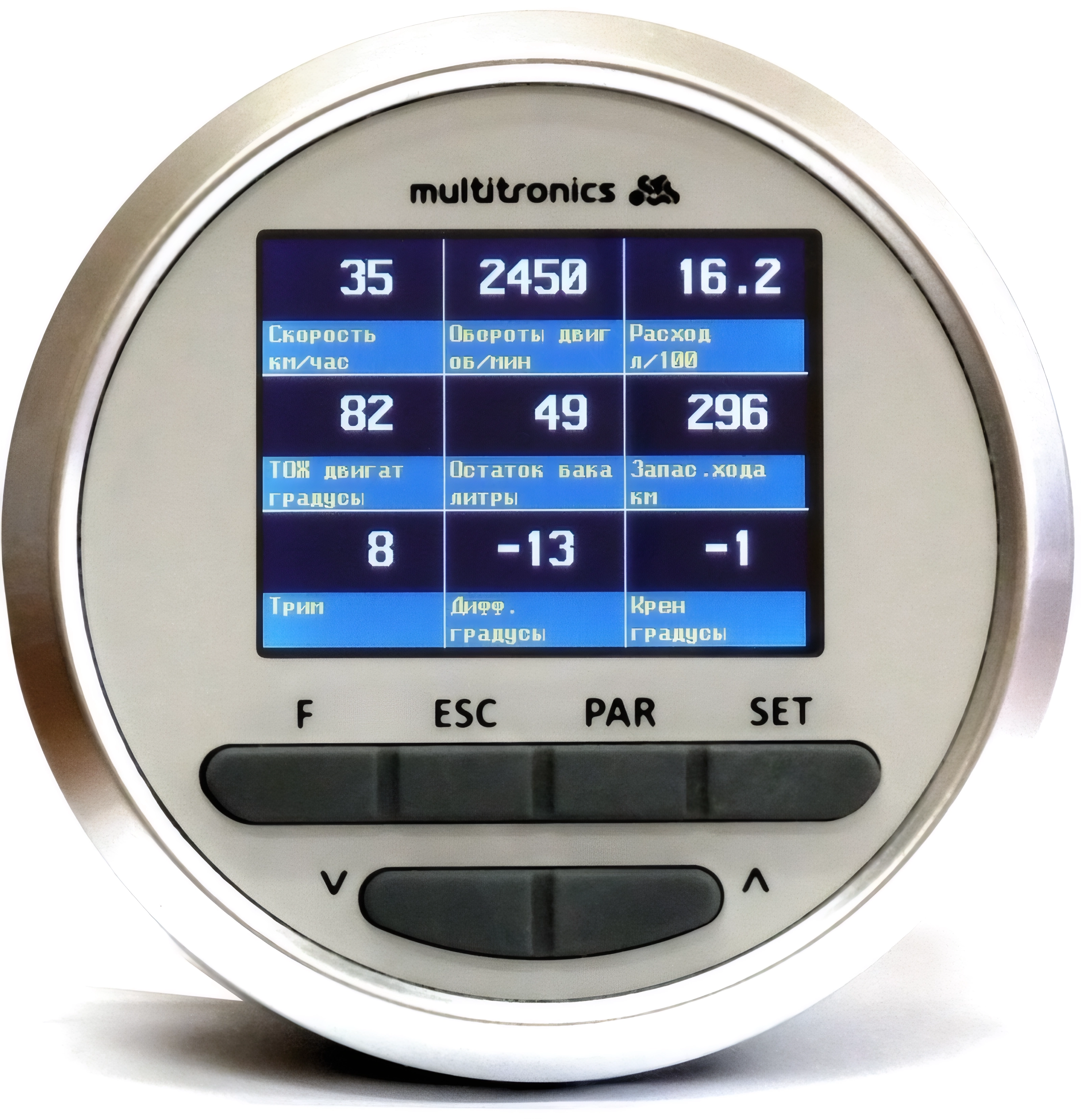 Бортовой компьютер Multitronics (Мультитроникс) CL-630 (Evinrude) - предназначен для эксплуатации на водной технике с лодочными моторами, цветной ЖК-дисплей 2.4 дюйма, разрешение 320х240 пикселей, GPS-модуль, встроенный акселерометр