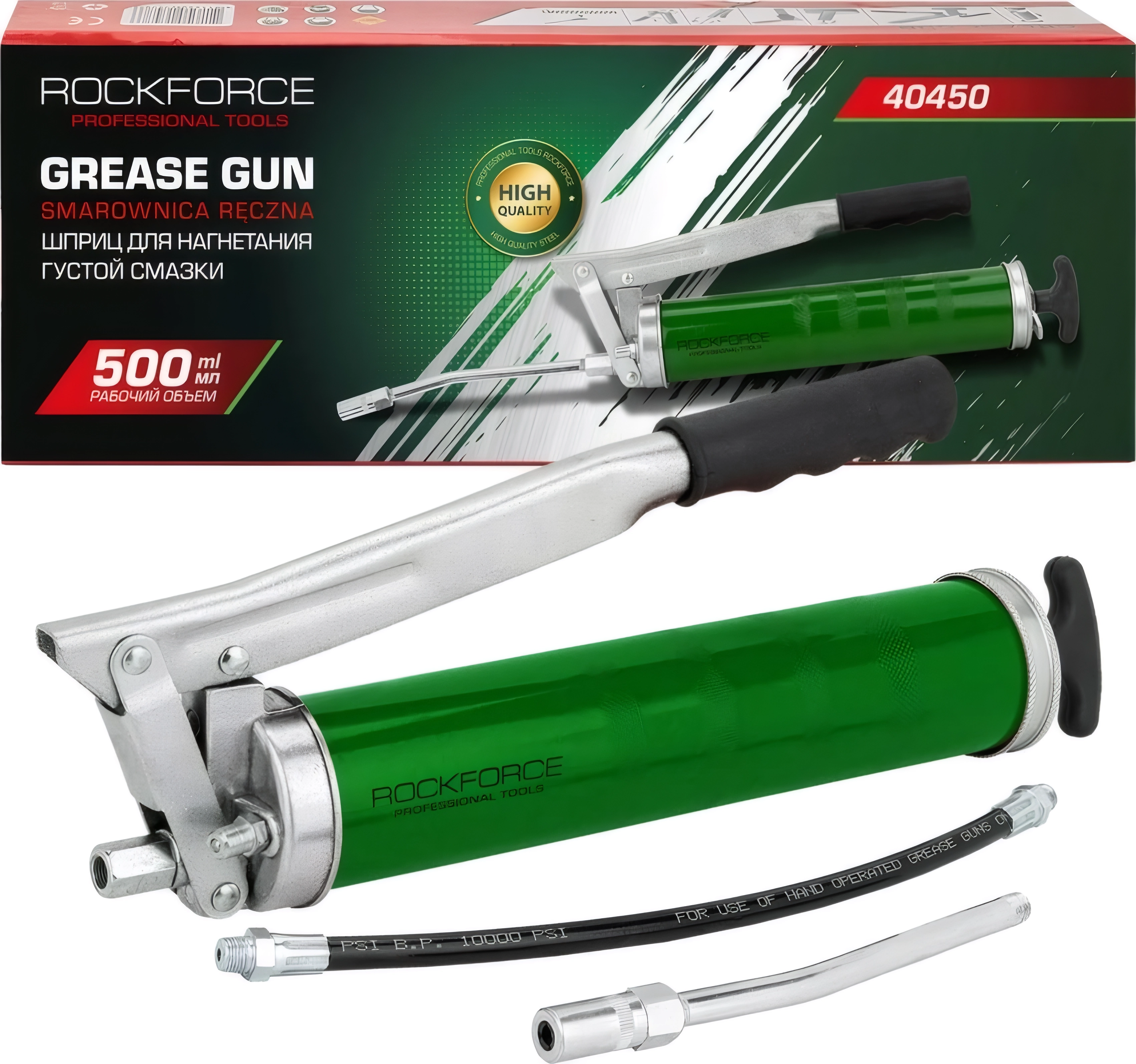 Шприц рычажно-плунжерный 500 мл профессиональный (гибкий шланг, трубка) под тубу AVS GM-500H арт. 117273