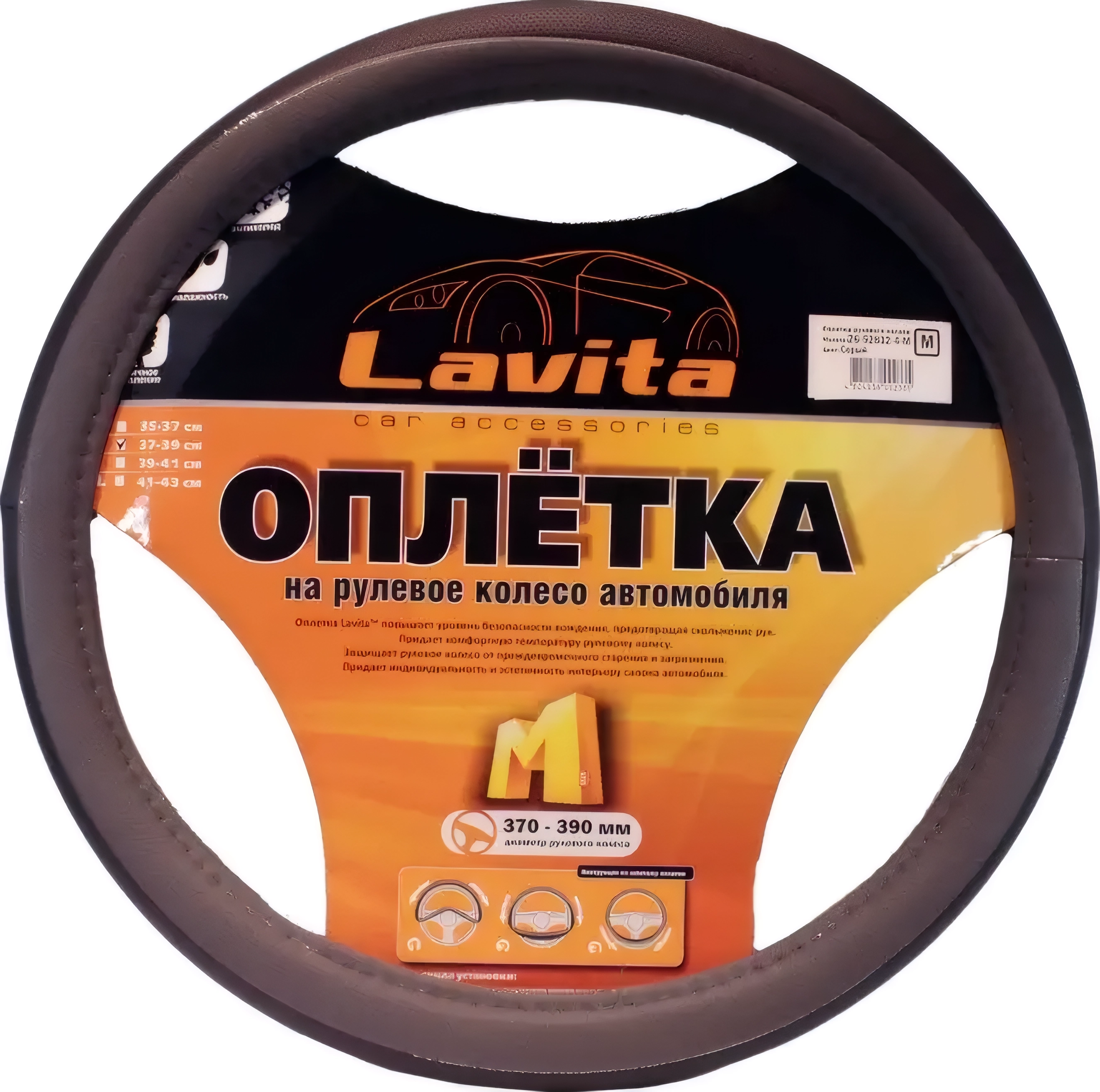 Оплетка на руль M 37-39см спонж 6 подушек серый 2108-15 арт. 73262