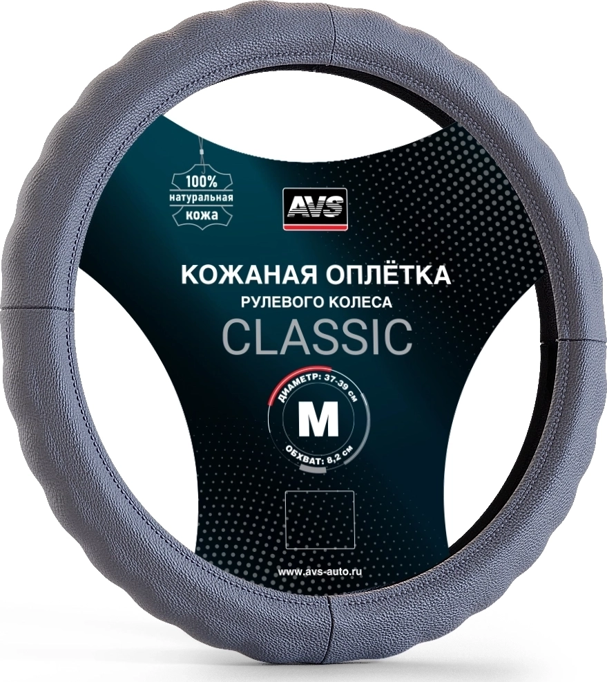 Оплетка на руль AVS GL-165M-GR- материал натуральная кожа, размер М, цвет серый арт. 16502