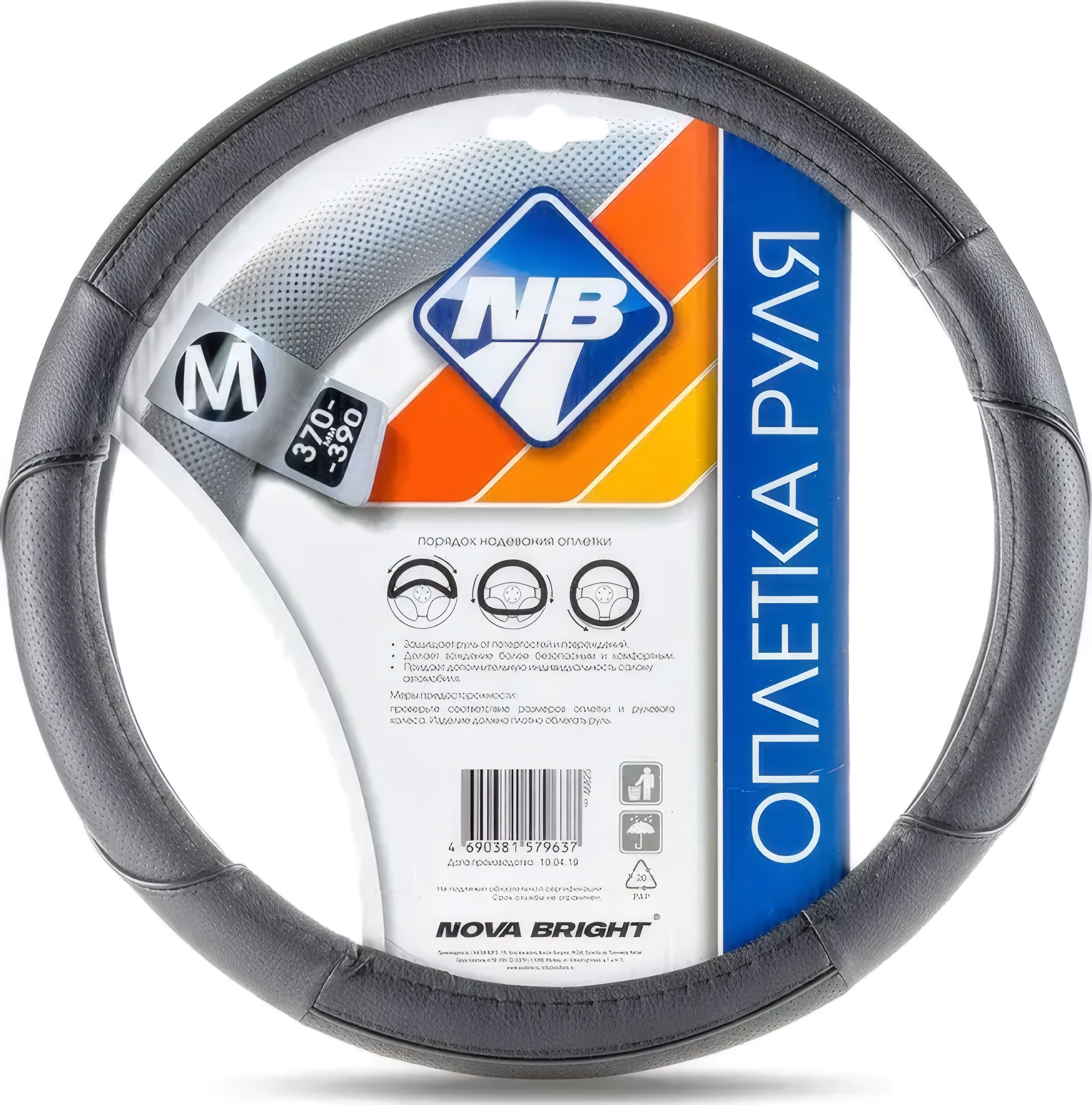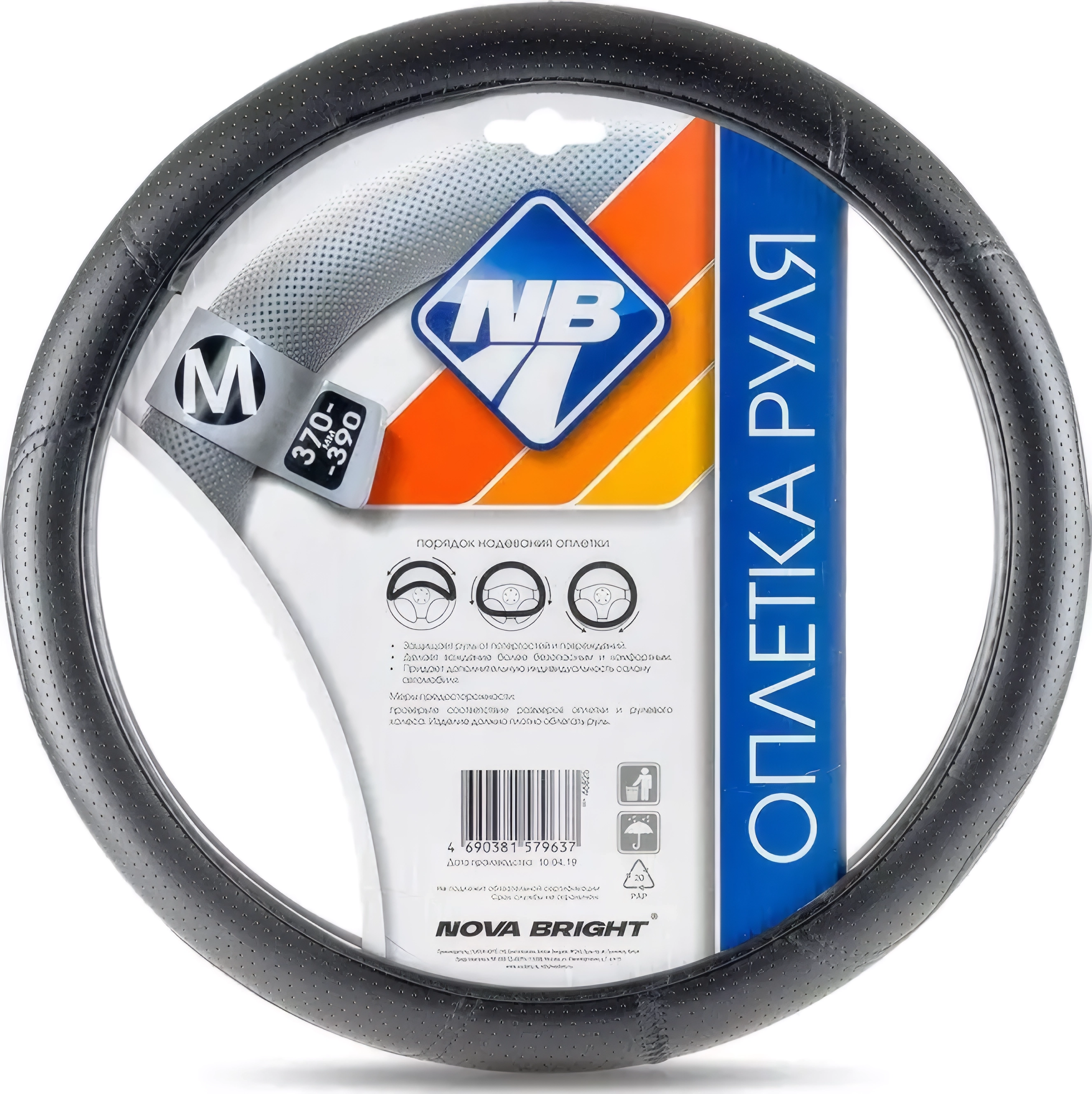 Оплетка на руль M 37-39см экокожа черная перфорированная c волнообразной строчкой 1/25 арт. 73283
