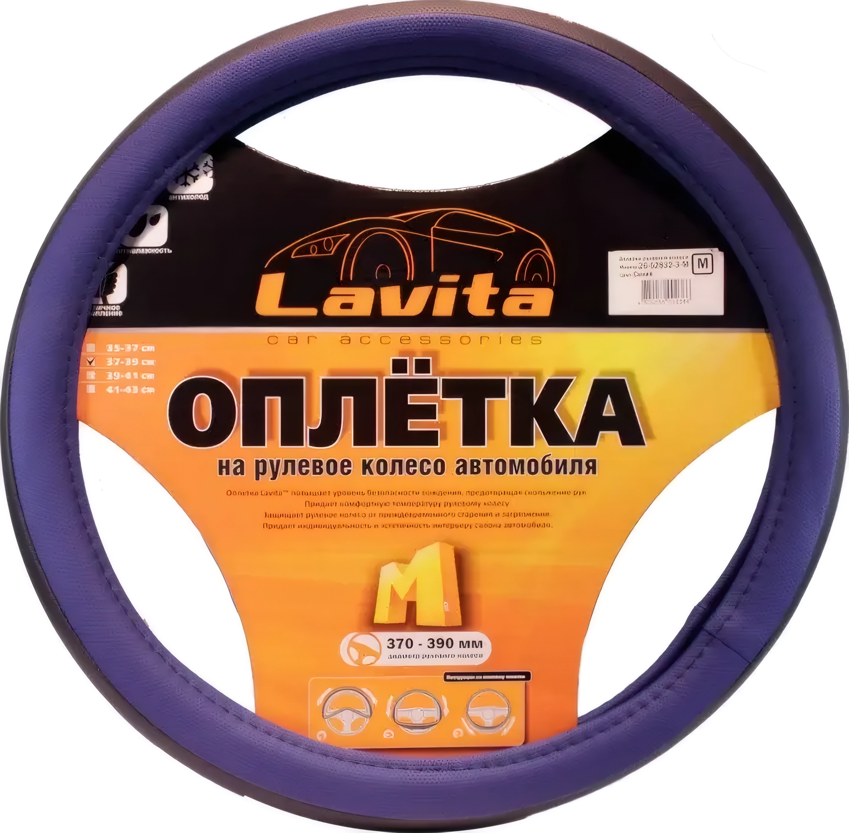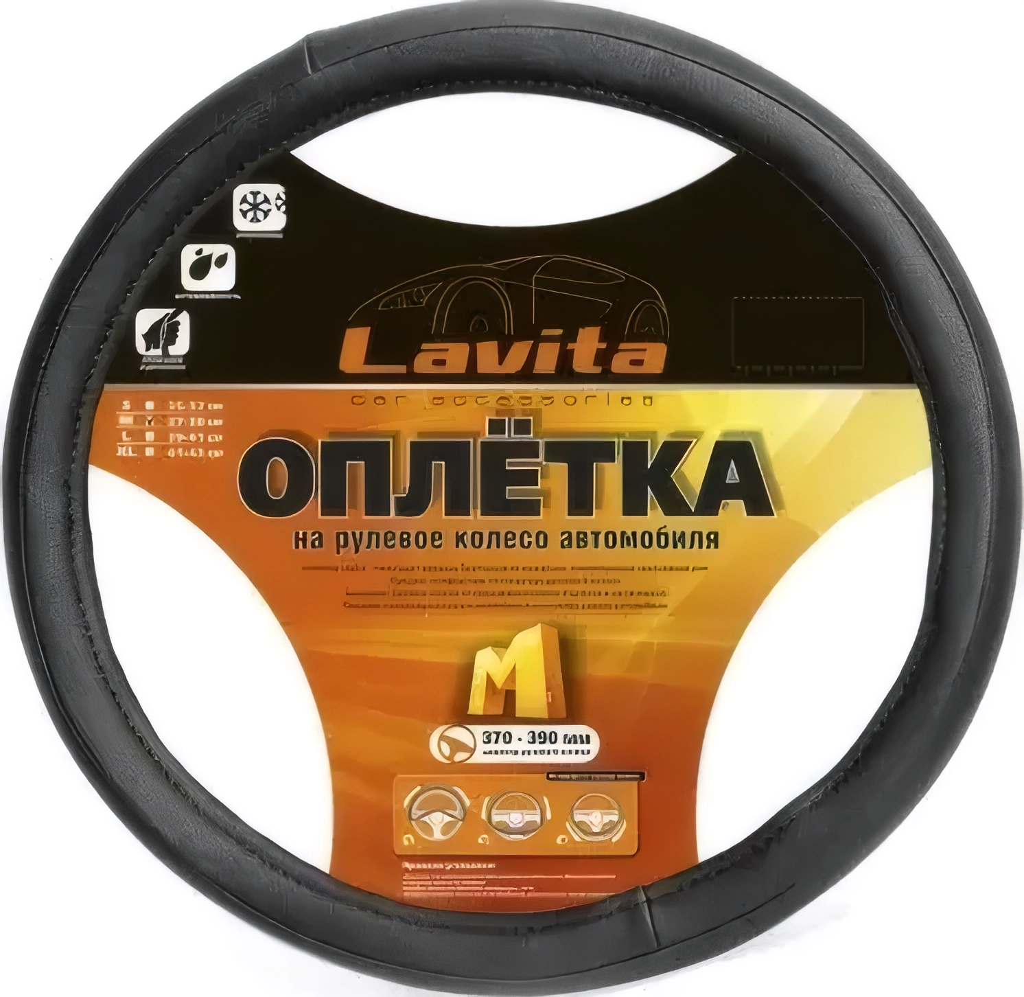 Оплетка на руль M 37-39см экокожа черная с фигурным тиснением арт. 73290