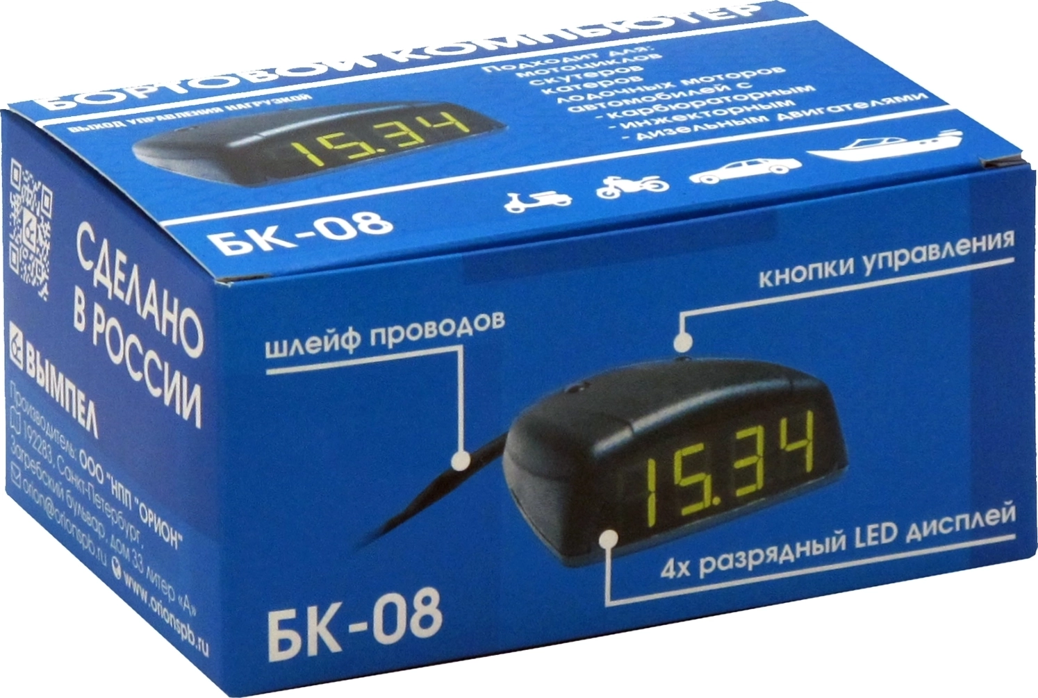 Бортовой компьютер Вымпел БК-08 для карбюраторных, инжекторных, дизельных двигателей, мотоциклов, катеров - светодиодный дисплей, тахометр, вольтметр, термометр, звуковое оповещение, режим экономии энергии, установка на приборную панель