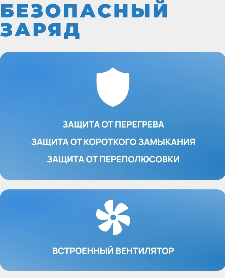 Другой немалозначимой деталью представленного устройства является присутствие у него защиты от перегрева, состоящей из двух систем. Она включает в себя электронную схему и микровентилятор. Схема ограничения выходного тока будет способствовать уменьшению последнего при повышении температуры выше нормы внутри корпуса аппарата. Микровентилятор будет включаться автоматически в случае возникновения внештатной ситуации.