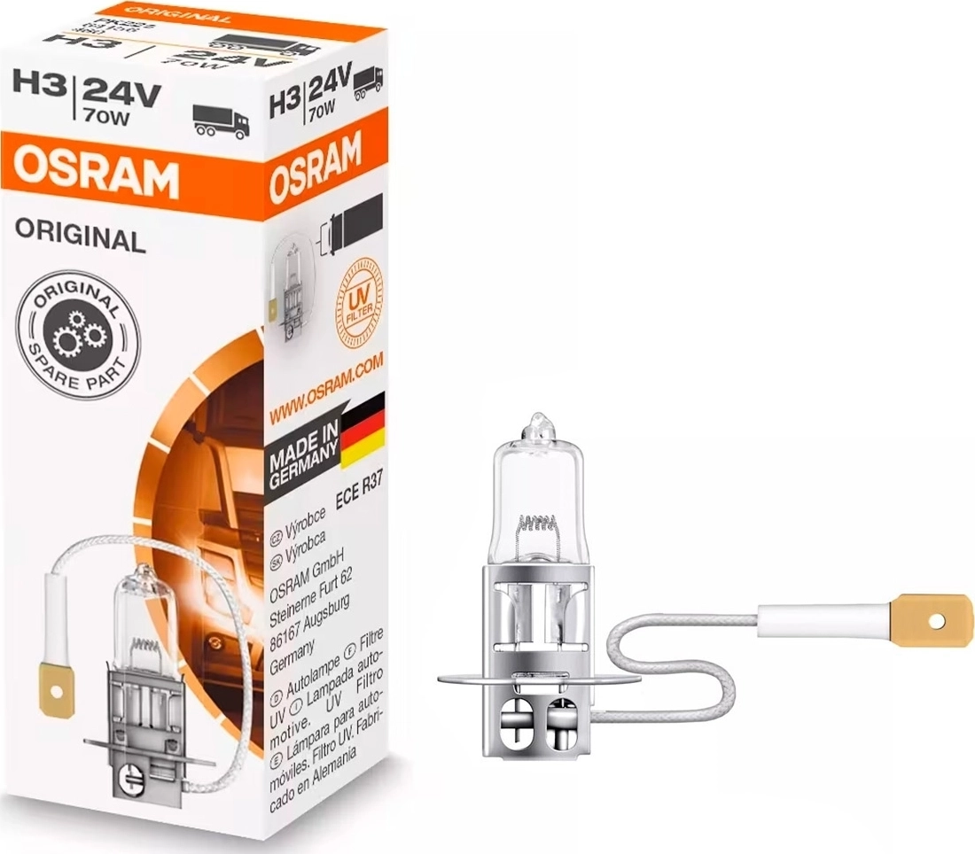 Лампа Osram H3 (64156) 24V 70W - страна-прозводитель - Германия, яркость около 1750 lm, цветовая температура - 3200K (артикул 7333)