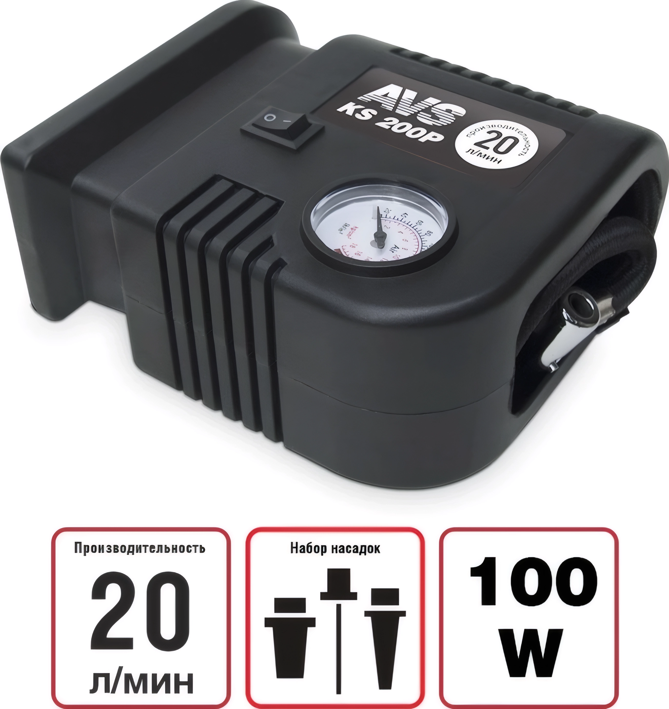 Автомобильный компрессор Turbo AVS KS200P - высокотехнологичная сборка, провод питания 3 метра, ... арт. 8777