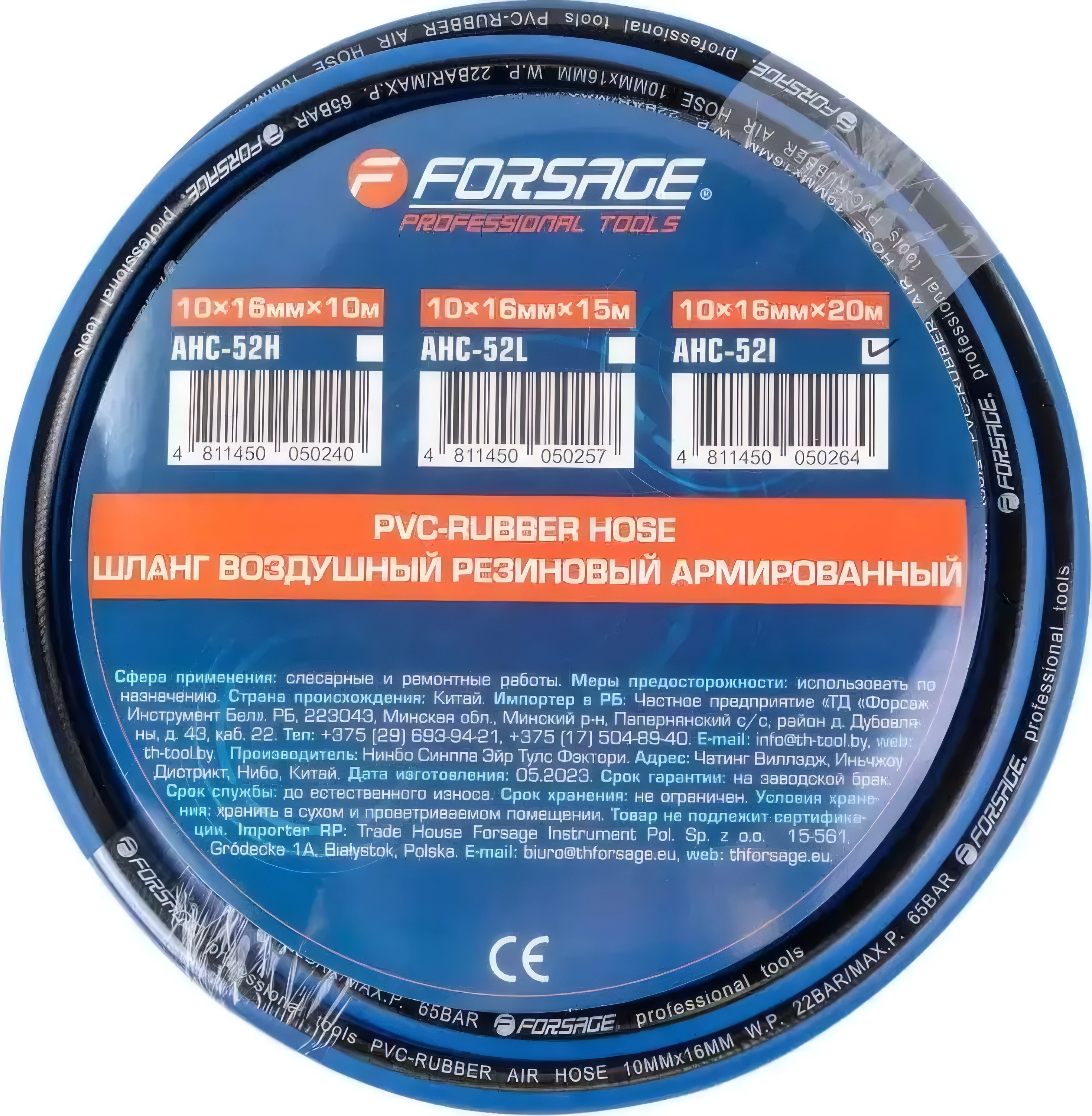Шланг для пневматического инструмента полиуретановый с штуцерами 10х15 мм., L=15 м арт. 20621