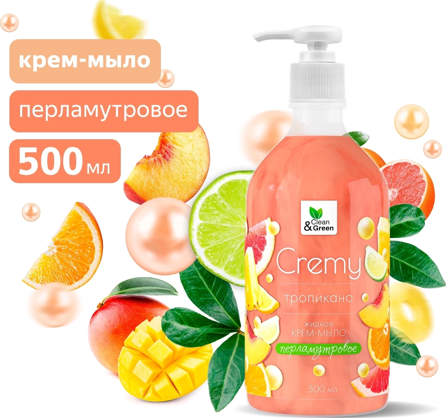 Крем-мыло жидкое с перламутром "Soapy" тропикано увлажн. с дозатором 500 мл. Clean&Green арт. 91370