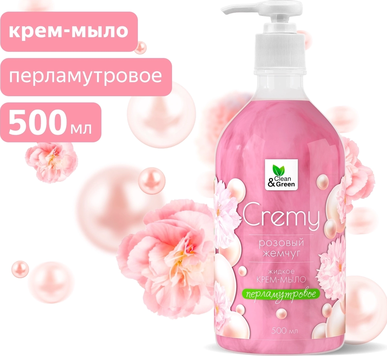 Крем-мыло жидкое с перламутром "Soapy" розовый жемчуг увлажн. с дозатором 500 мл. Clean&Green арт. 91369