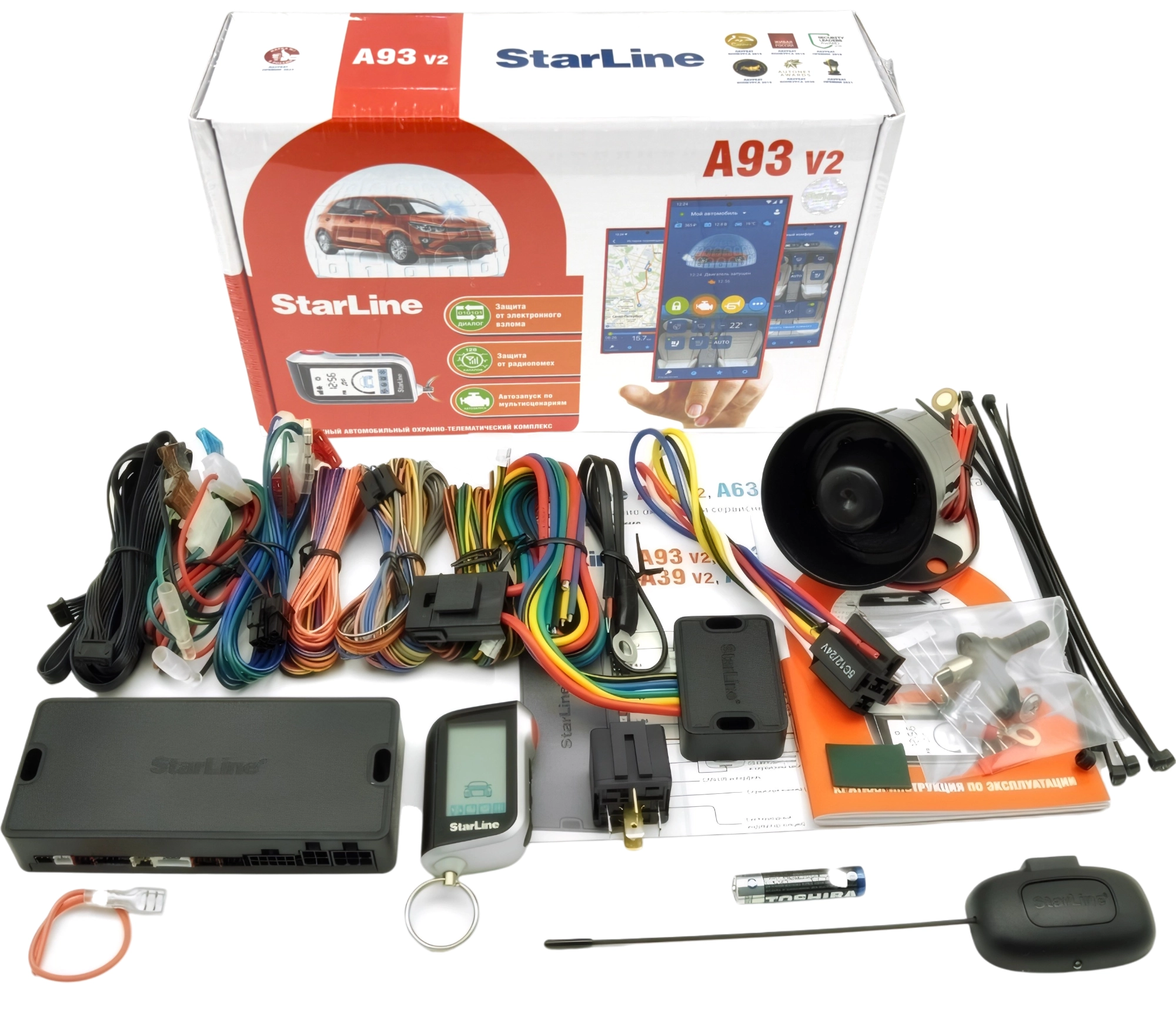 Автосигнализация StarLine A93 v2 ECO с автозапуском - диалоговая защита, 3D-датчик удара, наклона, энергоэкономичность, защита от помех, сирена в комплекте
