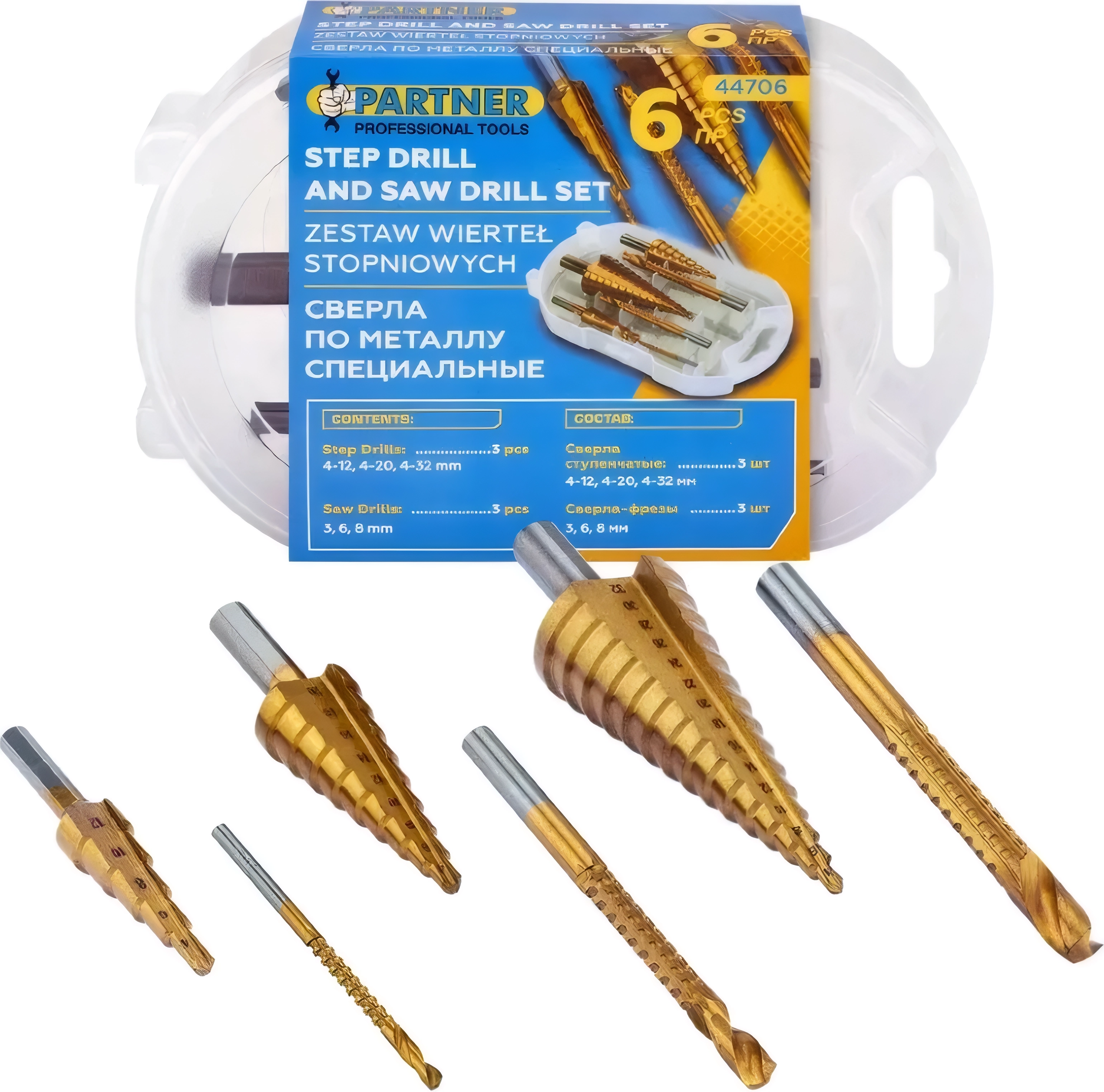 Набор сверл ступенчатых и фрез 6 предм. в футляре арт. 120503