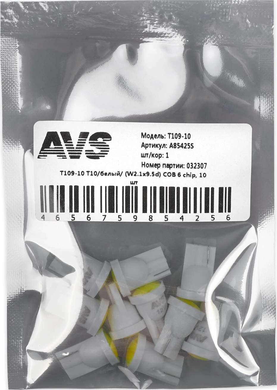 Комплект светодиодных ламп AVS T10 T109-10 (A85425S) 10 шт., W2.1x9.5d, COB 6 chip, белый арт. 92138